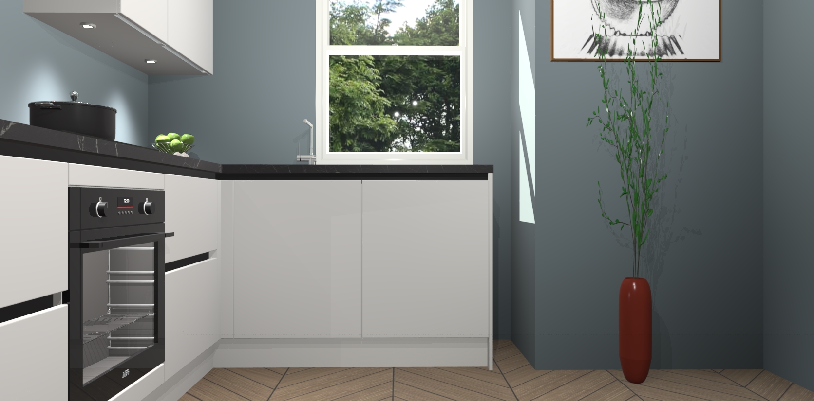 De Zijdegrijze greeploze keuken Geneve is uitgerust met 5 inbouwapparaten - een oven, inductiekookplaat, afzuigkap, vaatwasser en koelkast - voor al uw kook- en bewaarbehoeftes. U kunt deze apparaten desgewenst eenvoudig upgraden naar AEG of de oven omruilen voor een combimagnetron na het plaatsen van uw bestelling. En met de soft close deuren, voldoende opbergruimte en kasten die voorgemonteerd worden geleverd, bent u in een mum van tijd klaar om heerlijke maaltijden te bereiden!