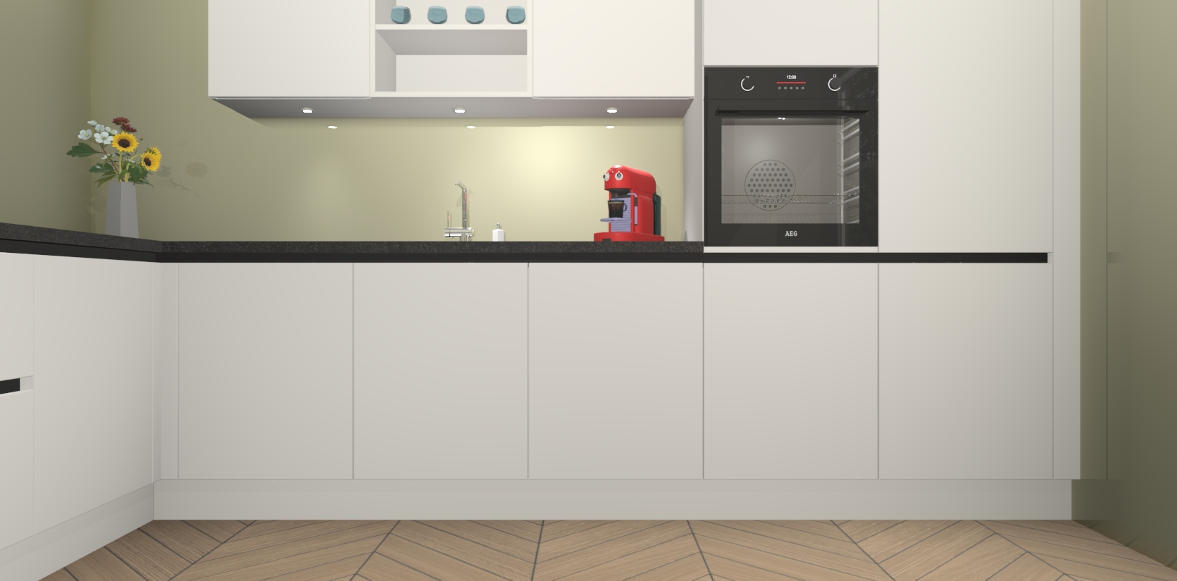 Inclusief plinten, stelpoten en werkblad
