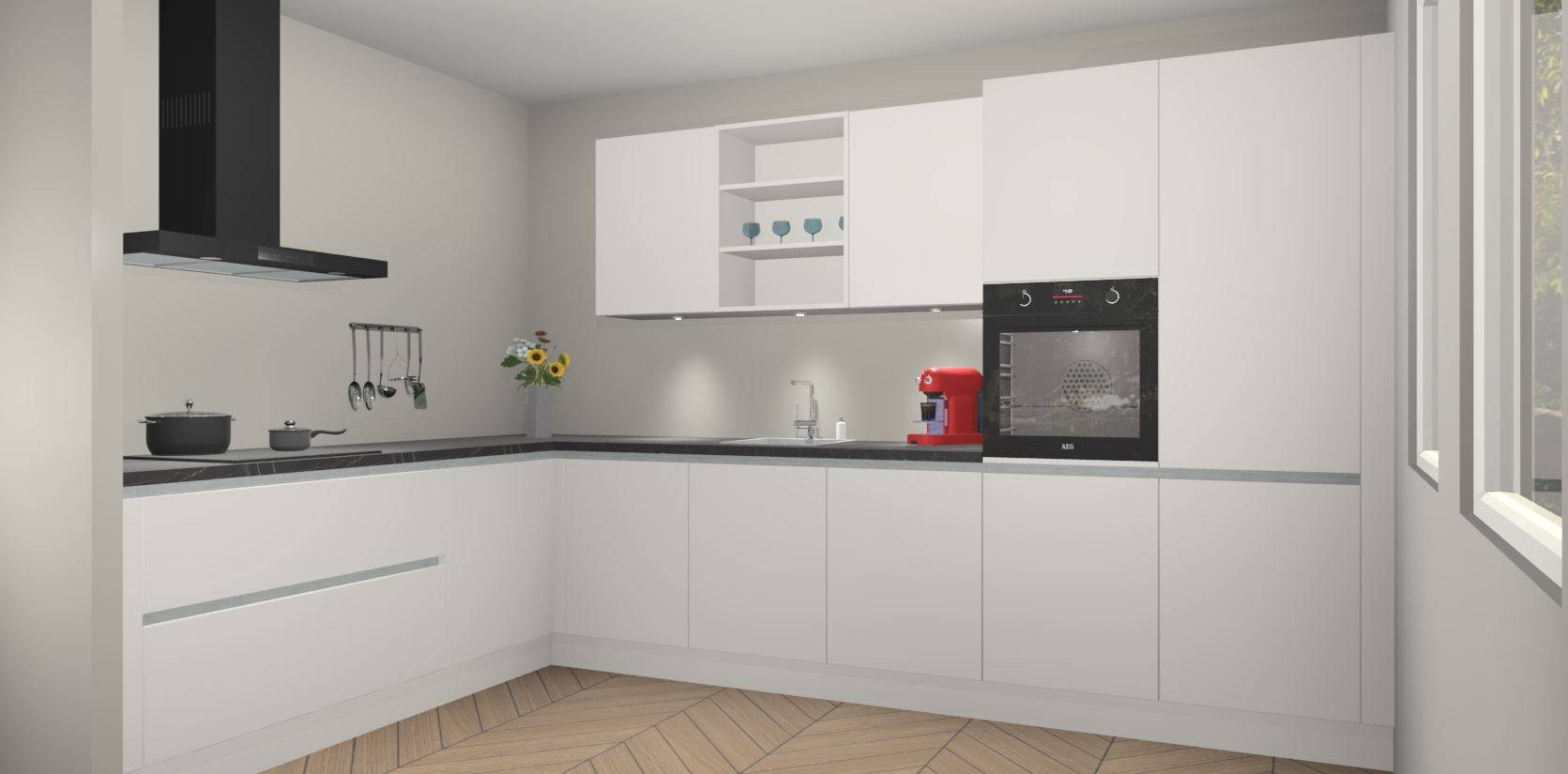 Inclusief plinten, stelpoten en werkblad