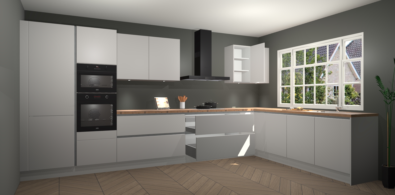 Kom dichtbij de perfecte keuken van uw dromen met de zijdegrijze greeploze keuken Graz. Met een prachtige houtlook en eigentijds ontwerp, straalt deze keuken warmte en sfeer uit. Of u nu liefhebber bent van traditionele of moderne stijlen, er is genoeg ruimte om aan al uw behoeften te voldoen.