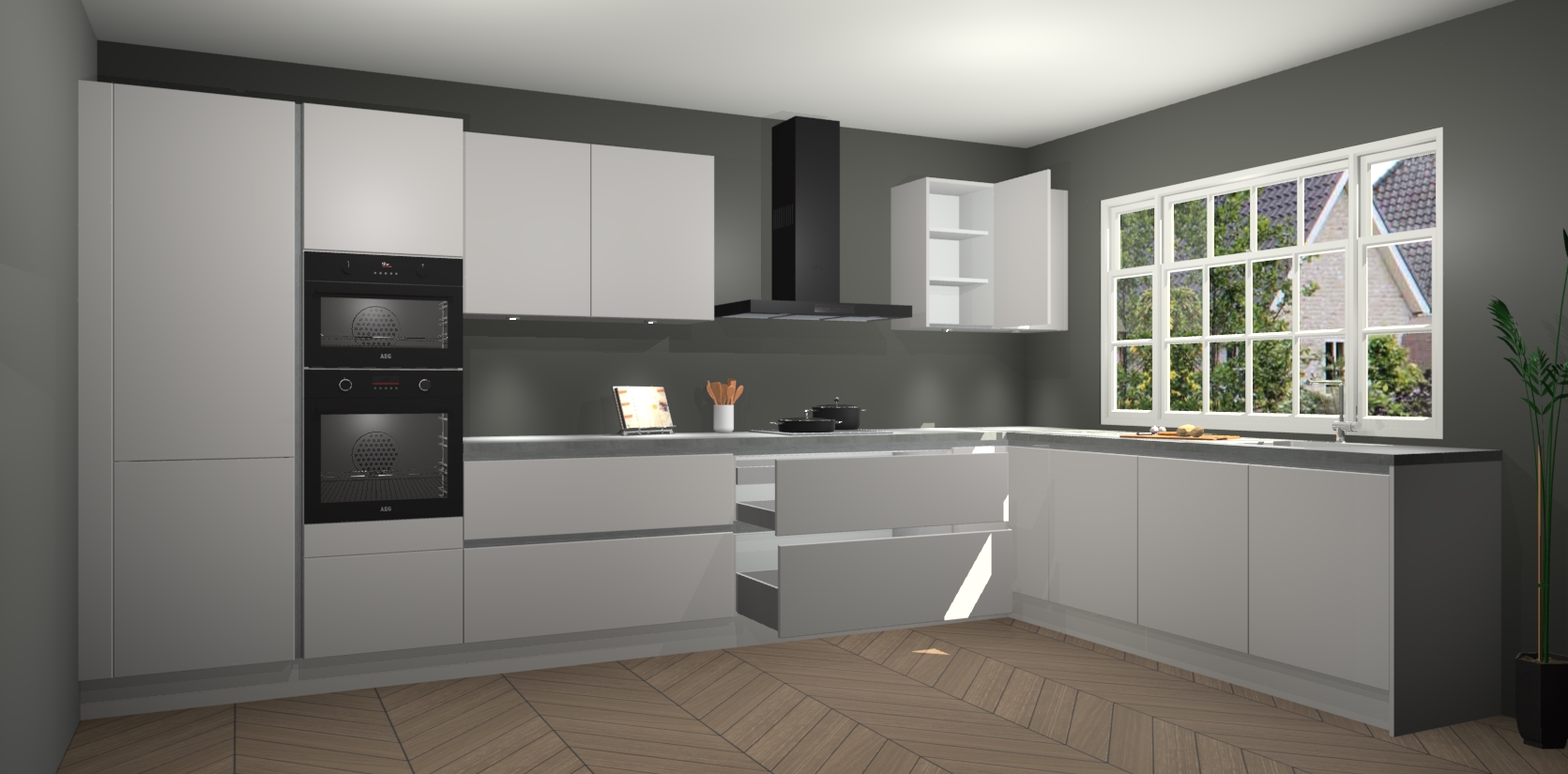 Heeft u nog apparatuur nodig? Geen probleem: de zijdegrijze greeploze keuken Graz bevat vijf ingebouwde apparaten - een oven, inductiekookplaat, afzuigkap, vaatwasser en koelkast - die gemakkelijk kunnen worden bijgewerkt naar AEG na bestelling. En als dat nog niet genoeg is; onze kasten worden pre-geassembleerd geleverd en zijn verkrijgbaar tegen een vastgeroeste lage prijs! U hoeft nooit meer te zoeken naar goede kwaliteit en service want onze producten hebben echt Duitse kwaliteit.