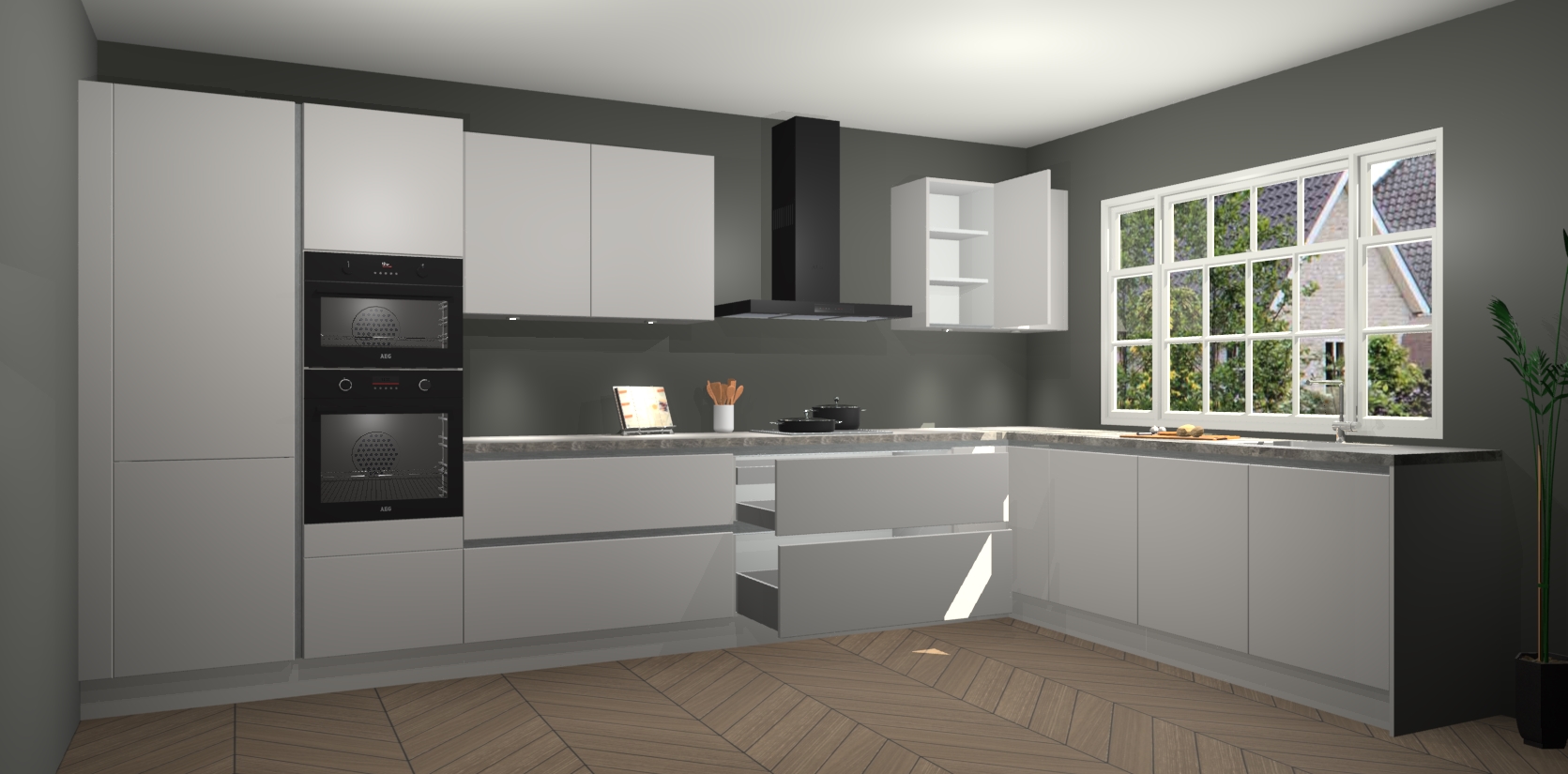 Heeft u nog apparatuur nodig? Geen probleem: de zijdegrijze greeploze keuken Graz bevat vijf ingebouwde apparaten - een oven, inductiekookplaat, afzuigkap, vaatwasser en koelkast - die gemakkelijk kunnen worden bijgewerkt naar AEG na bestelling. En als dat nog niet genoeg is; onze kasten worden pre-geassembleerd geleverd en zijn verkrijgbaar tegen een vastgeroeste lage prijs! U hoeft nooit meer te zoeken naar goede kwaliteit en service want onze producten hebben echt Duitse kwaliteit.