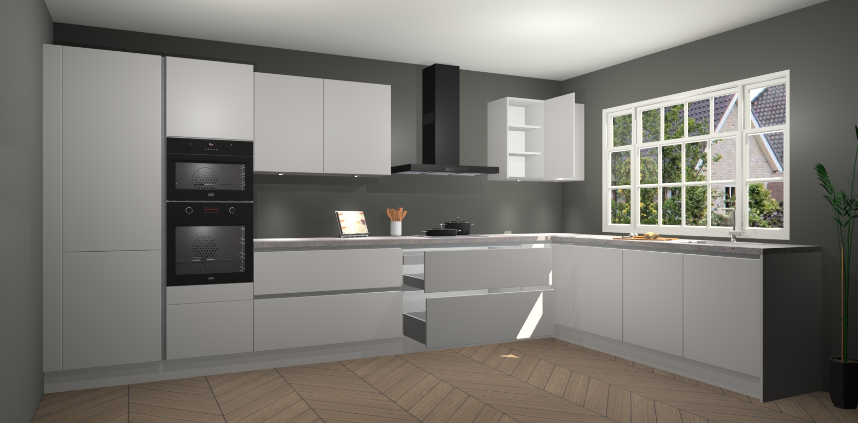 Heeft u nog apparatuur nodig? Geen probleem: de zijdegrijze greeploze keuken Graz bevat vijf ingebouwde apparaten - een oven, inductiekookplaat, afzuigkap, vaatwasser en koelkast - die gemakkelijk kunnen worden bijgewerkt naar AEG na bestelling. En als dat nog niet genoeg is; onze kasten worden pre-geassembleerd geleverd en zijn verkrijgbaar tegen een vastgeroeste lage prijs! U hoeft nooit meer te zoeken naar goede kwaliteit en service want onze producten hebben echt Duitse kwaliteit.