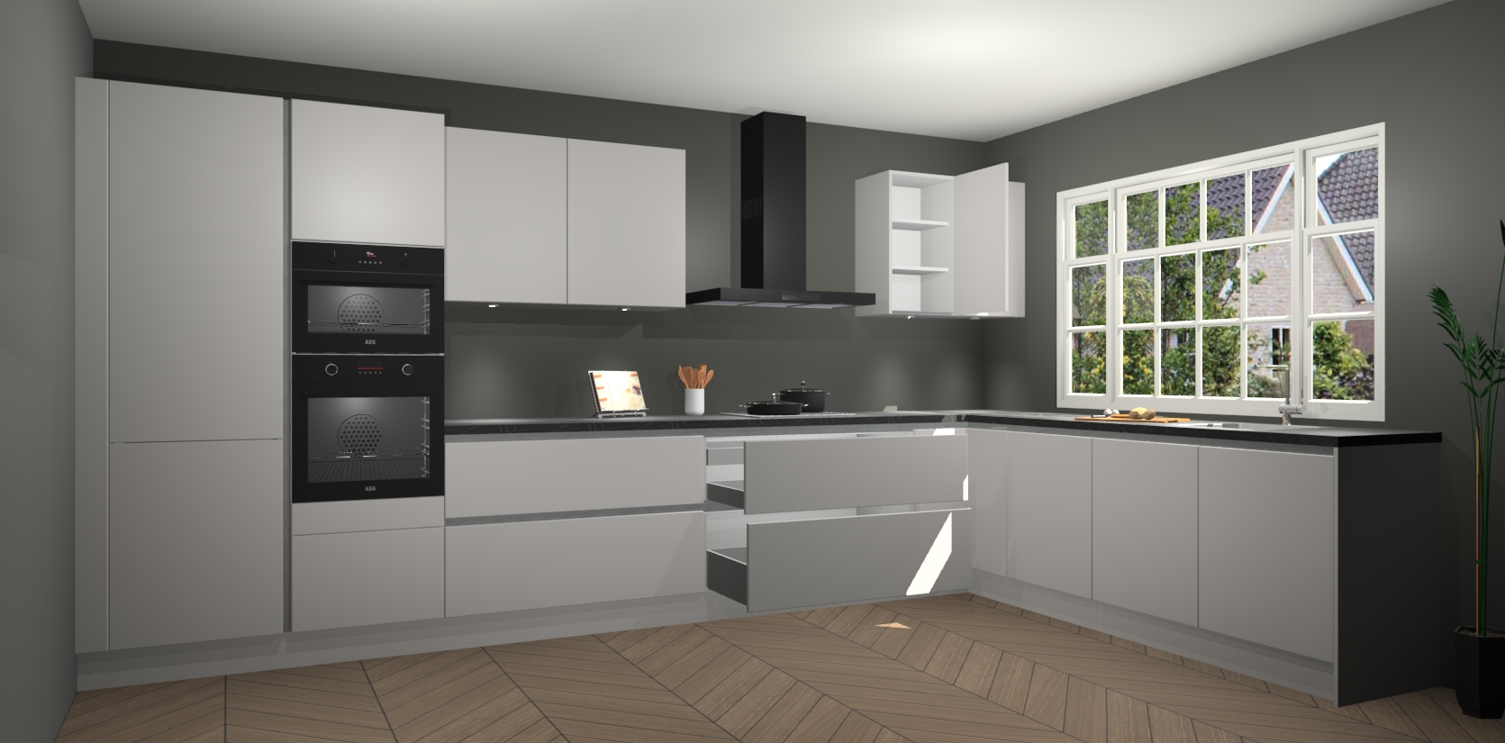Heeft u nog apparatuur nodig? Geen probleem: de zijdegrijze greeploze keuken Graz bevat vijf ingebouwde apparaten - een oven, inductiekookplaat, afzuigkap, vaatwasser en koelkast - die gemakkelijk kunnen worden bijgewerkt naar AEG na bestelling. En als dat nog niet genoeg is; onze kasten worden pre-geassembleerd geleverd en zijn verkrijgbaar tegen een vastgeroeste lage prijs! U hoeft nooit meer te zoeken naar goede kwaliteit en service want onze producten hebben echt Duitse kwaliteit.