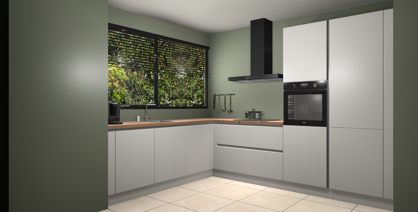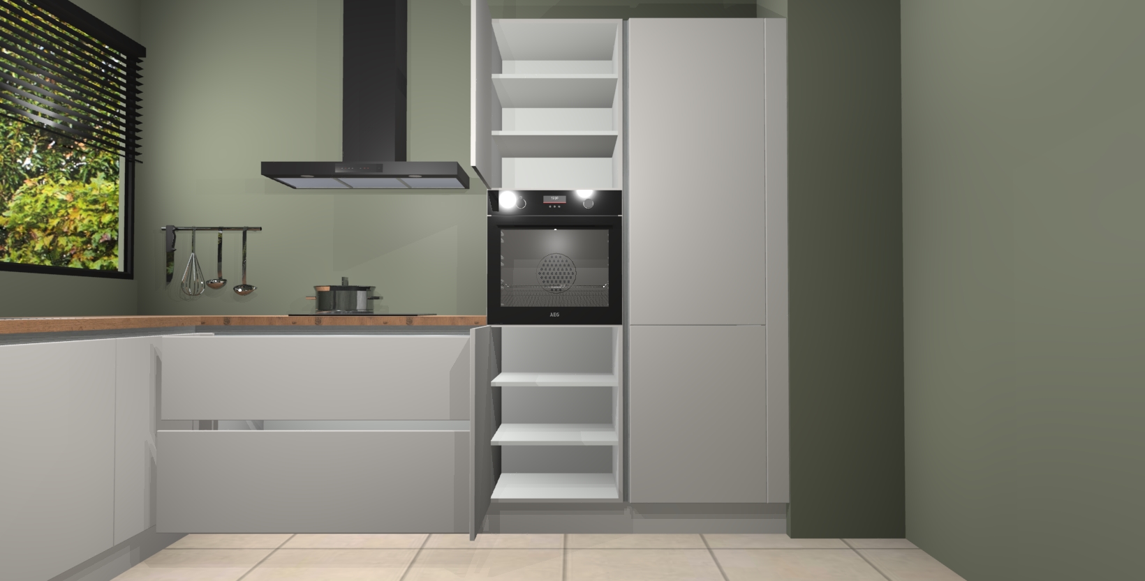 Met een modern, tijdloos design en ruime opslagruimte, zult u zich in no-time thuis voelen in uw nieuwe keuken. Uw leven wordt eenvoudiger met de soft-close deuren die voor het ultieme stille comfort zorgen - geen geluid dat u stoort terwijl u kookt. Ook is de keuken voorzien van 5 ingebouwde apparaten: een oven, inductie kookplaat, afzuigkap, vaatwasser en koelkast. Deze kunnen gemakkelijk na bestelling worden bijgewerkt naar AEG - waardoor uw luxe ervaring compleet is.