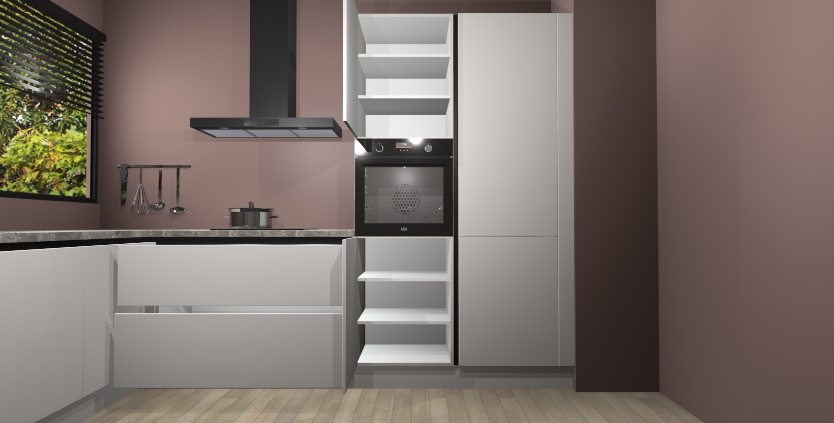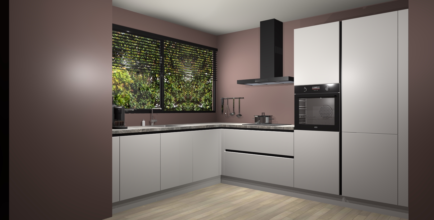 Met een modern, tijdloos design en ruime opslagruimte, zult u zich in no-time thuis voelen in uw nieuwe keuken. Uw leven wordt eenvoudiger met de soft-close deuren die voor het ultieme stille comfort zorgen - geen geluid dat u stoort terwijl u kookt. Ook is de keuken voorzien van 5 ingebouwde apparaten: een oven, inductie kookplaat, afzuigkap, vaatwasser en koelkast. Deze kunnen gemakkelijk na bestelling worden bijgewerkt naar AEG - waardoor uw luxe ervaring compleet is.