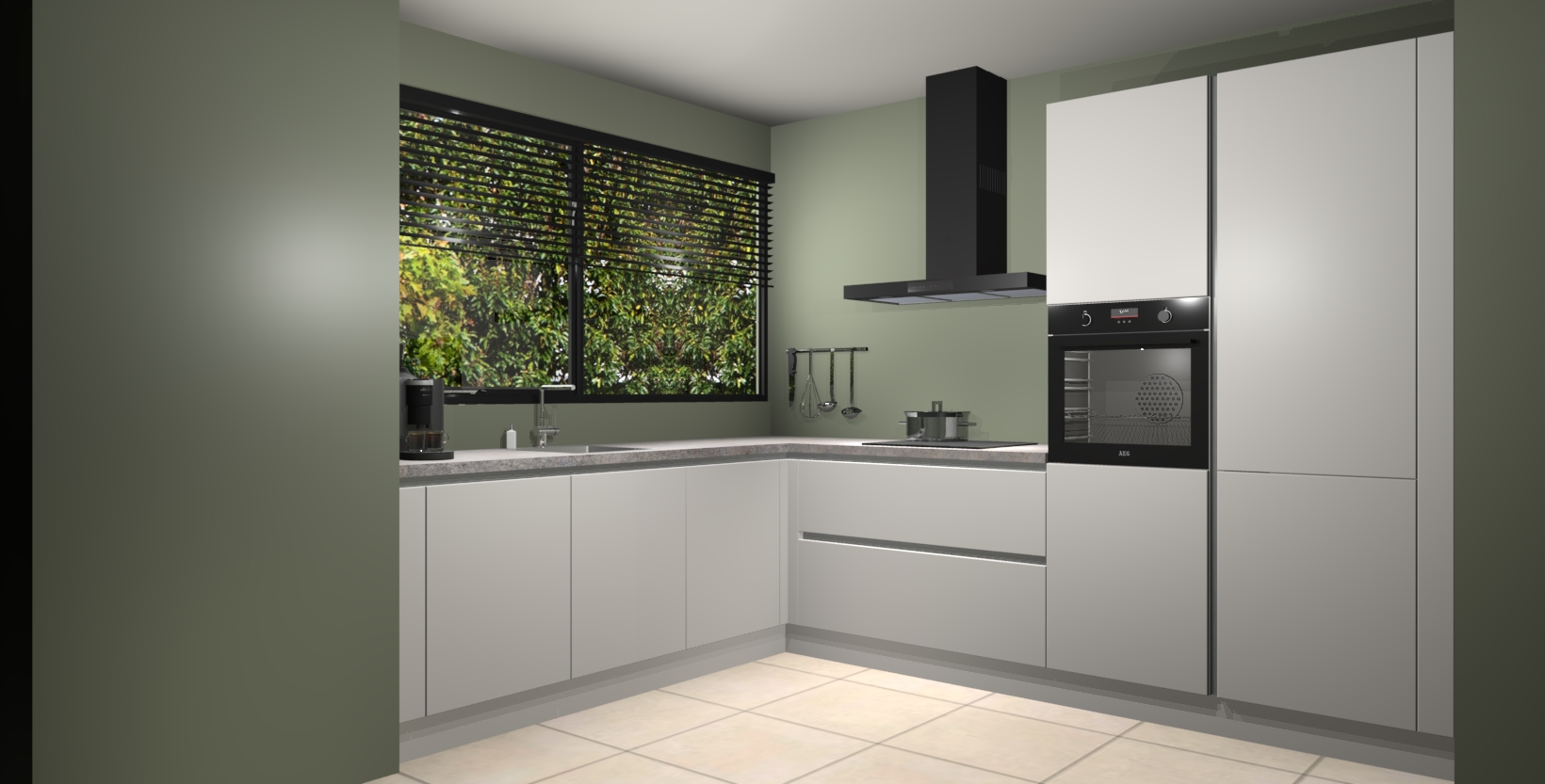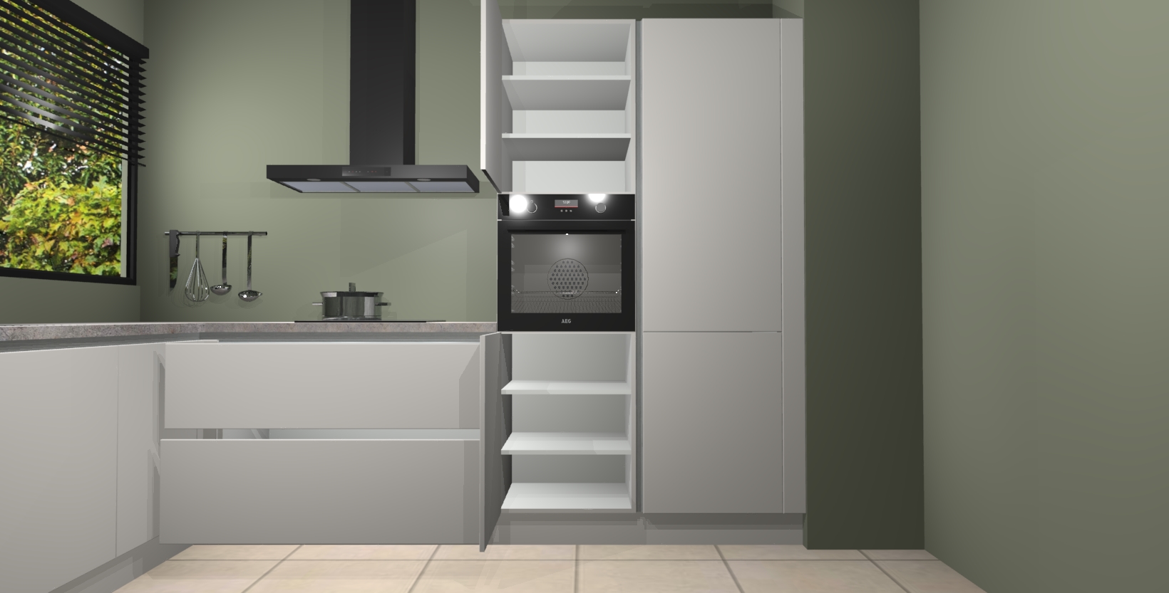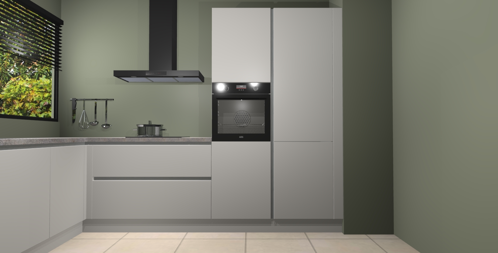Met een modern, tijdloos design en ruime opslagruimte, zult u zich in no-time thuis voelen in uw nieuwe keuken. Uw leven wordt eenvoudiger met de soft-close deuren die voor het ultieme stille comfort zorgen - geen geluid dat u stoort terwijl u kookt. Ook is de keuken voorzien van 5 ingebouwde apparaten: een oven, inductie kookplaat, afzuigkap, vaatwasser en koelkast. Deze kunnen gemakkelijk na bestelling worden bijgewerkt naar AEG - waardoor uw luxe ervaring compleet is.
