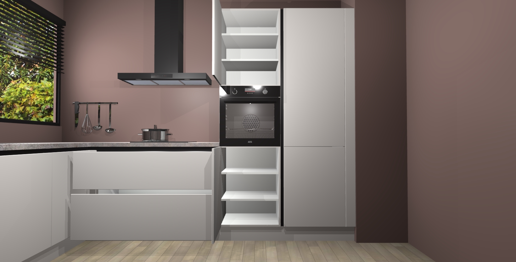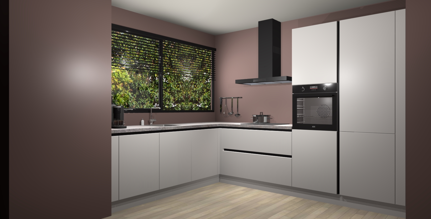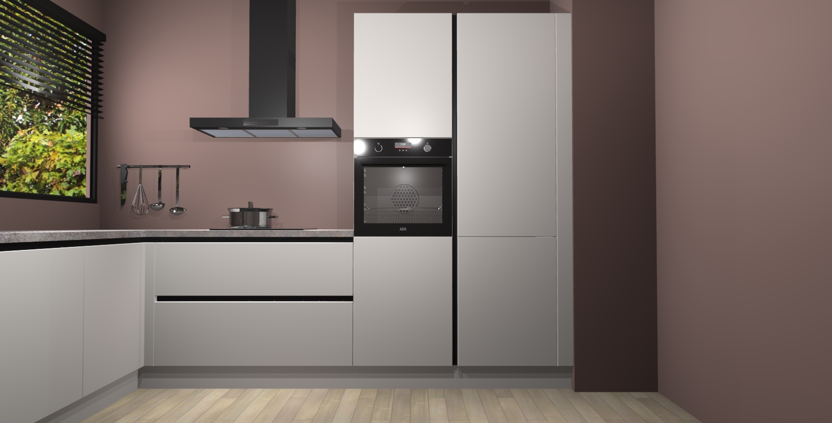 Met een modern, tijdloos design en ruime opslagruimte, zult u zich in no-time thuis voelen in uw nieuwe keuken. Uw leven wordt eenvoudiger met de soft-close deuren die voor het ultieme stille comfort zorgen - geen geluid dat u stoort terwijl u kookt. Ook is de keuken voorzien van 5 ingebouwde apparaten: een oven, inductie kookplaat, afzuigkap, vaatwasser en koelkast. Deze kunnen gemakkelijk na bestelling worden bijgewerkt naar AEG - waardoor uw luxe ervaring compleet is.