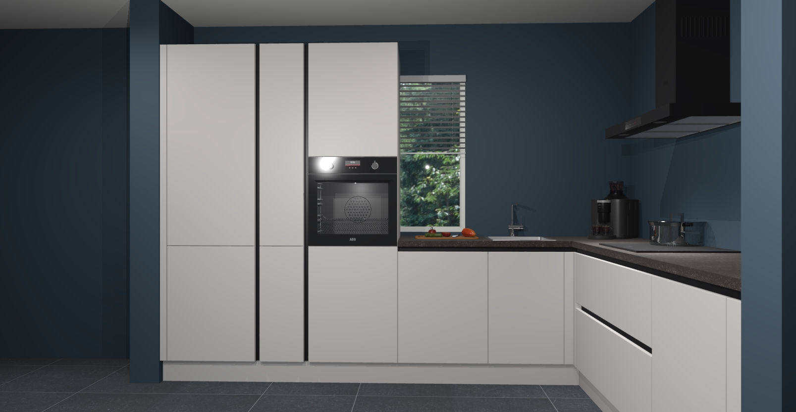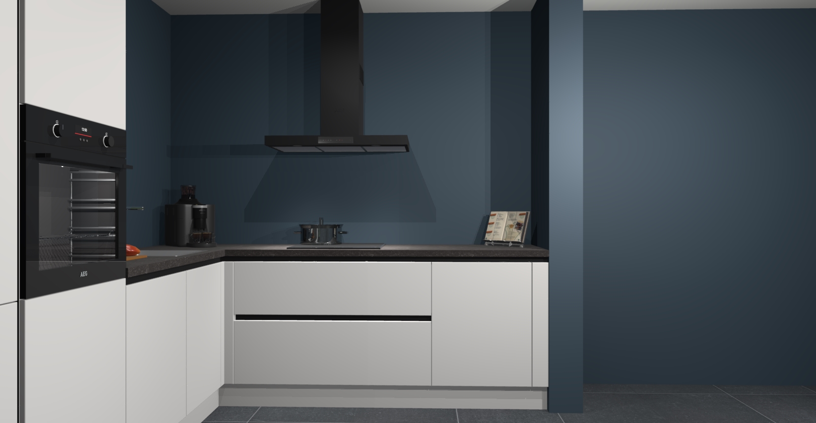 Met een modern, tijdloos design en ruime opslagruimte, zult u zich in no-time thuis voelen in uw nieuwe keuken. Uw leven wordt eenvoudiger met de soft-close deuren die voor het ultieme stille comfort zorgen - geen geluid dat u stoort terwijl u kookt. Ook is de keuken voorzien van 5 ingebouwde apparaten: een oven, inductie kookplaat, afzuigkap, vaatwasser en koelkast. Deze kunnen gemakkelijk na bestelling worden bijgewerkt naar AEG - waardoor uw luxe ervaring compleet is.