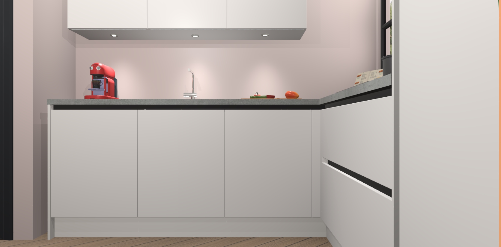 Inclusief plinten, stelpoten en werkblad