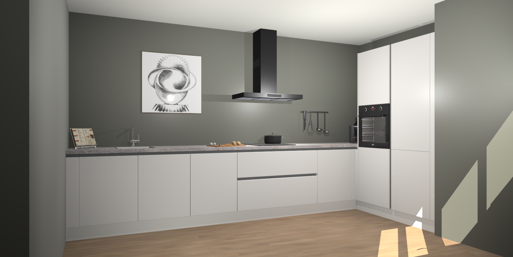 Welkom bij de Zijdegrijze greeploze keuken Khao Lak. Deze prachtige keuken zal de komende jaren het middelpunt van de belangstelling in uw huis zijn. Uitgerust met vijf inbouwapparaten komt u nooit kookgereedschap tekort. Bovendien geeft de warme houtlook elke ruimte een uitnodigende en tijdloze uitstraling.