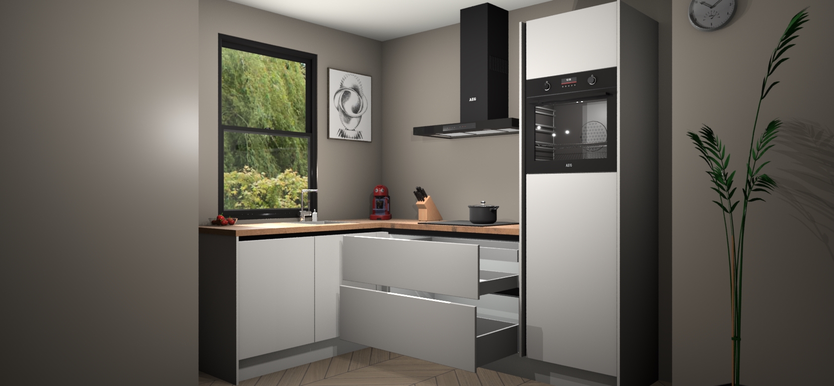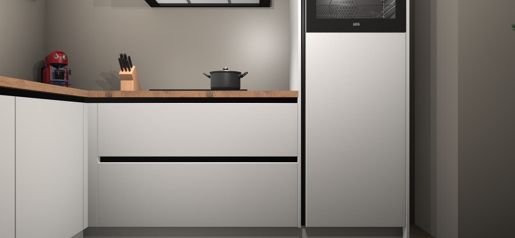 In deze box zijn alle kleuren verzameld van de deuren en werkbladen. Vraag de gratis kleurenbox aan en kijk thuis rustig verder!
