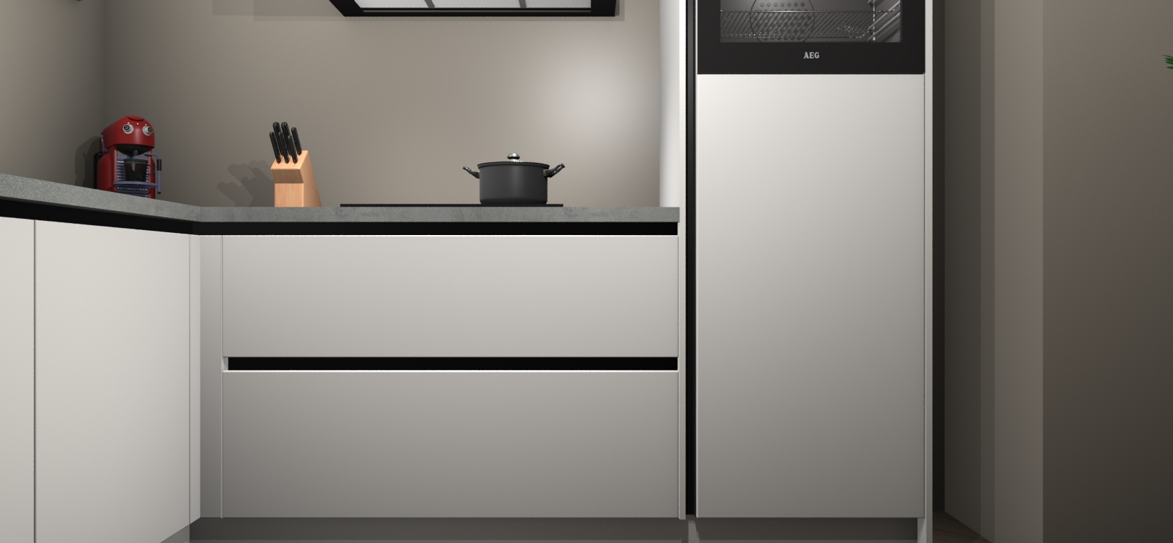 Moedige modernisten! De zijdegrijze greeploze keuken Kinshasa is het perfecte antwoord op al uw keukendromen. Dit geraffineerde, tijdloze ontwerp combineert strakke kasten met hoogglans details zodat u die dure look krijgt zonder het dure prijskaartje. We weten dat planning en uitvoering de sleutels zijn tot een geslaagde keukenrenovatie, dus hebben we ervoor gezorgd dat we vijf inbouwapparaten in ons pakket hebben: een oven, inductiekookplaat, afzuigkap, vaatwasser en koelkast. Deze kunnen na bestelling gemakkelijk worden uitgebreid voor nog meer gemak.