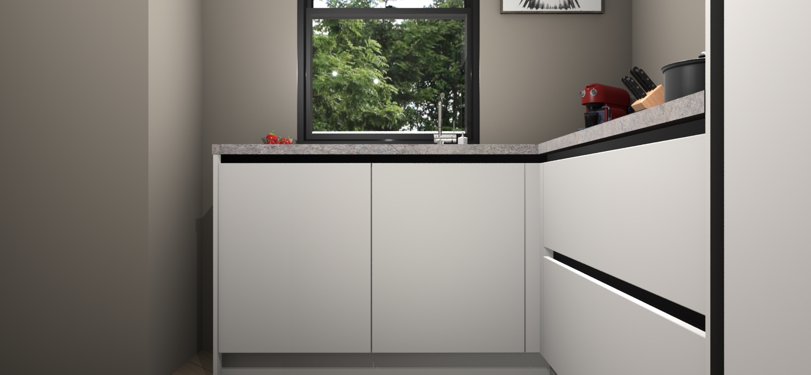 Moedige modernisten! De zijdegrijze greeploze keuken Kinshasa is het perfecte antwoord op al uw keukendromen. Dit geraffineerde, tijdloze ontwerp combineert strakke kasten met hoogglans details zodat u die dure look krijgt zonder het dure prijskaartje. We weten dat planning en uitvoering de sleutels zijn tot een geslaagde keukenrenovatie, dus hebben we ervoor gezorgd dat we vijf inbouwapparaten in ons pakket hebben: een oven, inductiekookplaat, afzuigkap, vaatwasser en koelkast. Deze kunnen na bestelling gemakkelijk worden uitgebreid voor nog meer gemak.