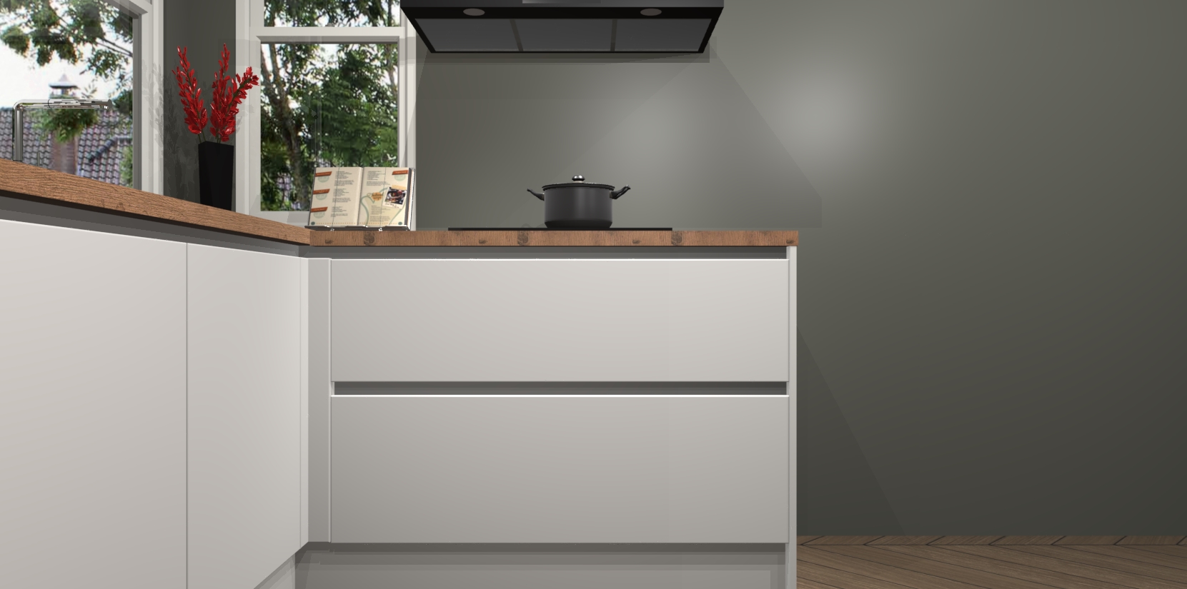 Inclusief plinten, stelpoten en werkblad
