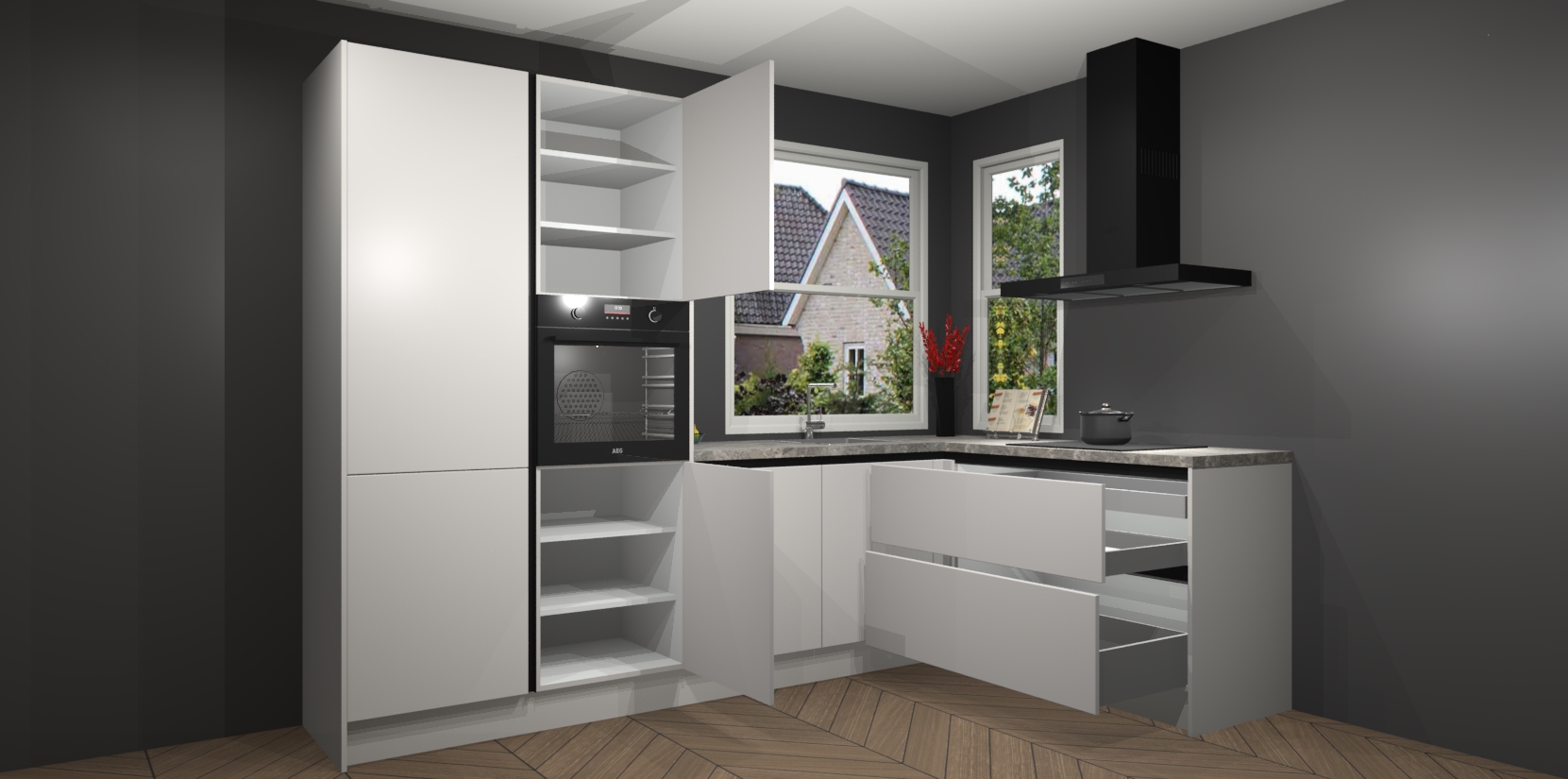 En dat is nog niet alles: u krijgt al dit gemak ook nog eens voor een vaste lage prijs! Bovendien is de levering snel: de Zijdegrijze greeploze keuken Kotor wordt al 7 weken na bestelling geleverd! Dat klopt - we leveren ze zelfs voorgemonteerd voor uw gemak. Dus waarom wachten? Haal de Zijdegrijze greeploze keuken Kotor vandaag nog in huis - een prachtige hoekkeuken met alle toeters en bellen die uw huis nodig heeft. Wacht niet - handel nu zolang de voorraad strekt!
