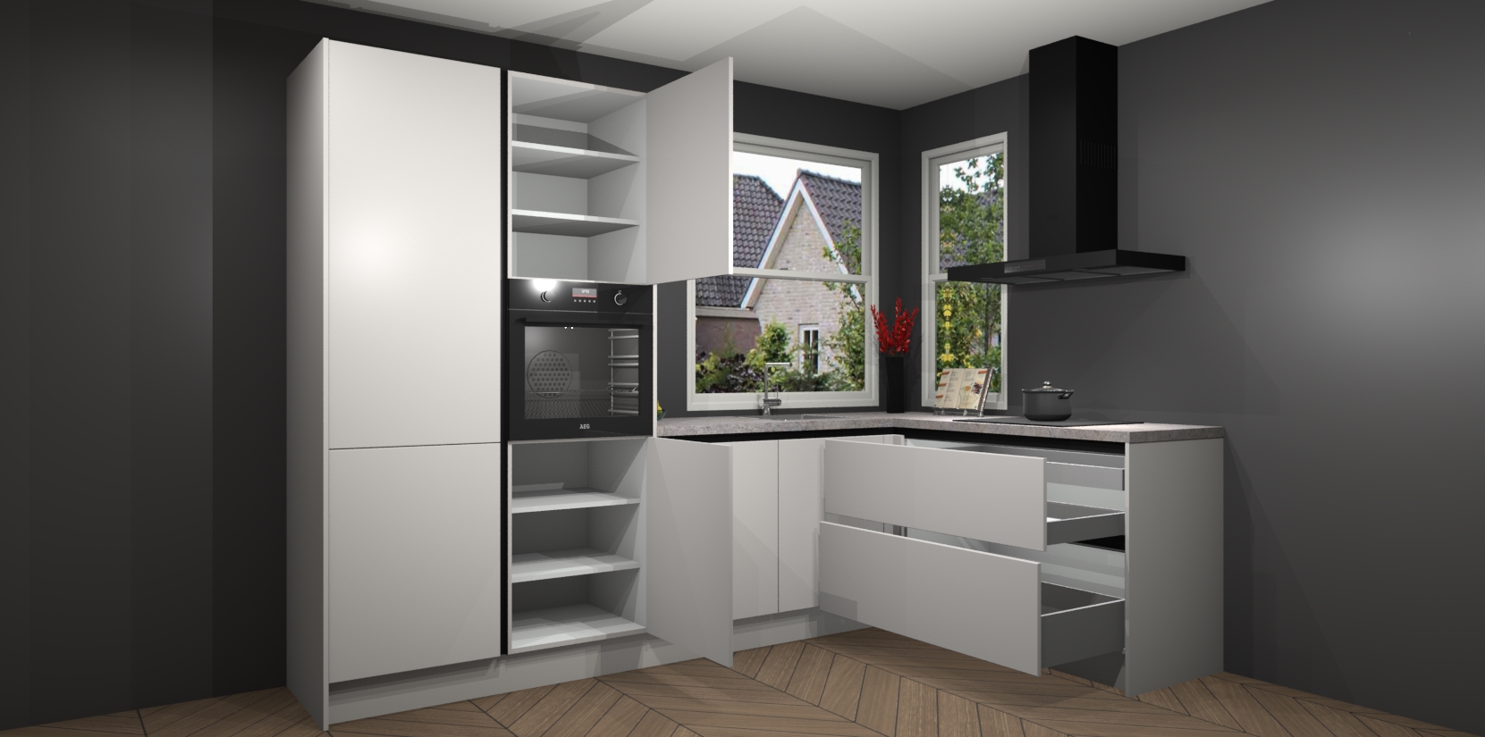 En dat is nog niet alles: u krijgt al dit gemak ook nog eens voor een vaste lage prijs! Bovendien is de levering snel: de Zijdegrijze greeploze keuken Kotor wordt al 7 weken na bestelling geleverd! Dat klopt - we leveren ze zelfs voorgemonteerd voor uw gemak. Dus waarom wachten? Haal de Zijdegrijze greeploze keuken Kotor vandaag nog in huis - een prachtige hoekkeuken met alle toeters en bellen die uw huis nodig heeft. Wacht niet - handel nu zolang de voorraad strekt!
