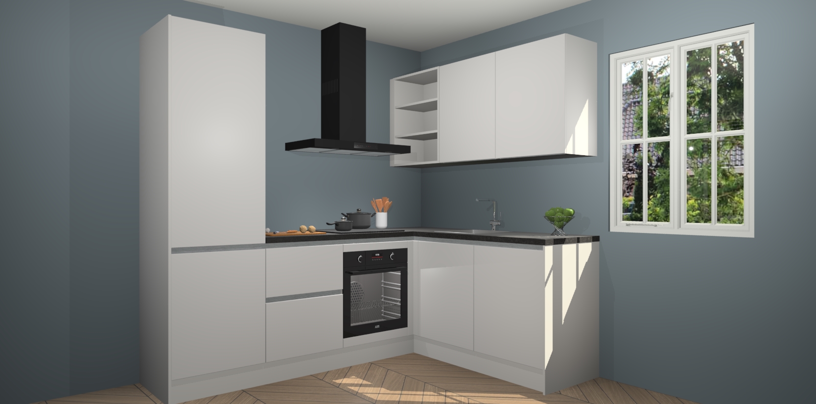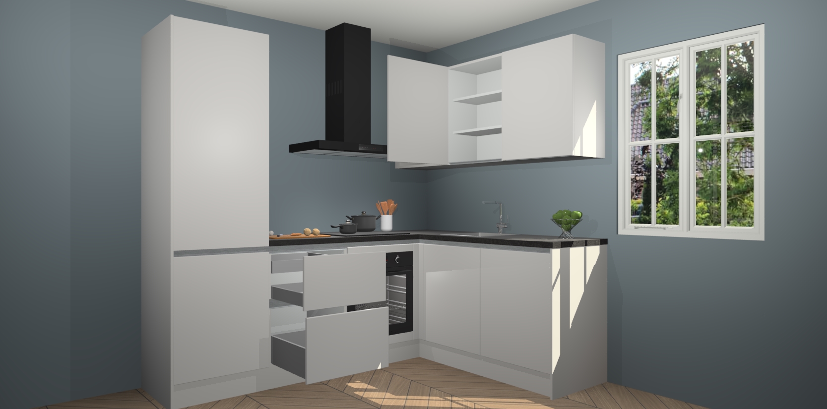 Inclusief plinten, stelpoten en werkblad