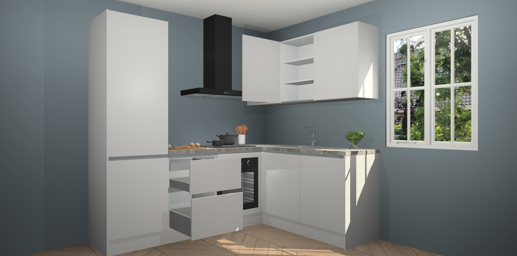 In deze box zijn alle kleuren verzameld van de deuren en werkbladen. Vraag de gratis kleurenbox aan en kijk thuis rustig verder!