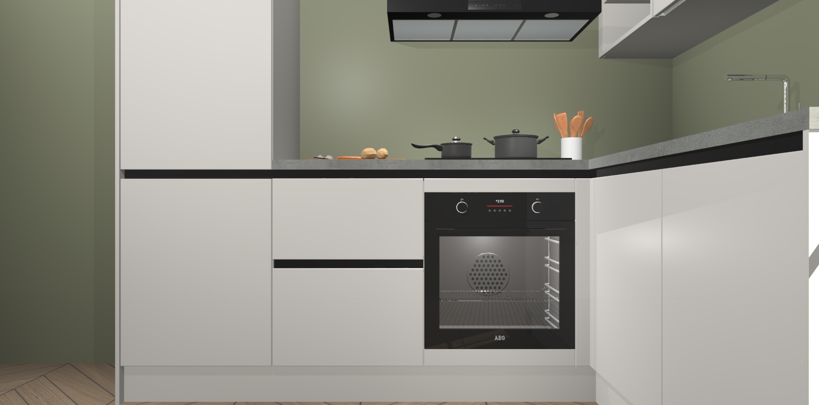 Dit model biedt u voldoende opbergruimte en vijf ingebouwde apparaten: een oven, inductiekookplaat, afzuigkap, vaatwasser en koelkast. Deze apparaten kunnen gemakkelijk worden geüpgrade naar AEG nadat u besteld heeft. De verschillende laden en kastjes bevatten softclose-deuren waardoor ze gezellig dichtvallen met een geruststellend helemaal geruisloos geluid. En dat is nog niet alles! We garanderen ook dat de prijs altijd laag blijft - dus haal nu uw Zijdegrijze greeploze keuken Krakau terwijl het kan.