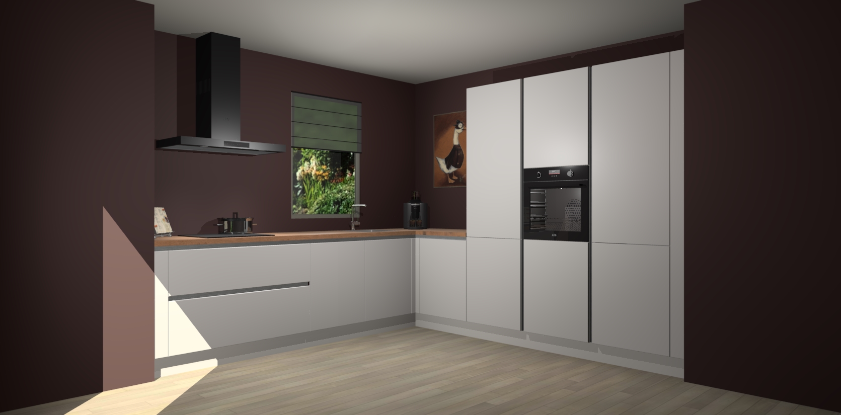 Welkom bij de Zijdegrijze greeploze keuken Laos. Deze prachtige keuken zal de komende jaren het middelpunt van de belangstelling in uw huis zijn. Uitgerust met vijf inbouwapparaten komt u nooit kookgereedschap tekort. Bovendien geeft de warme houtlook elke ruimte een uitnodigende en tijdloze uitstraling.