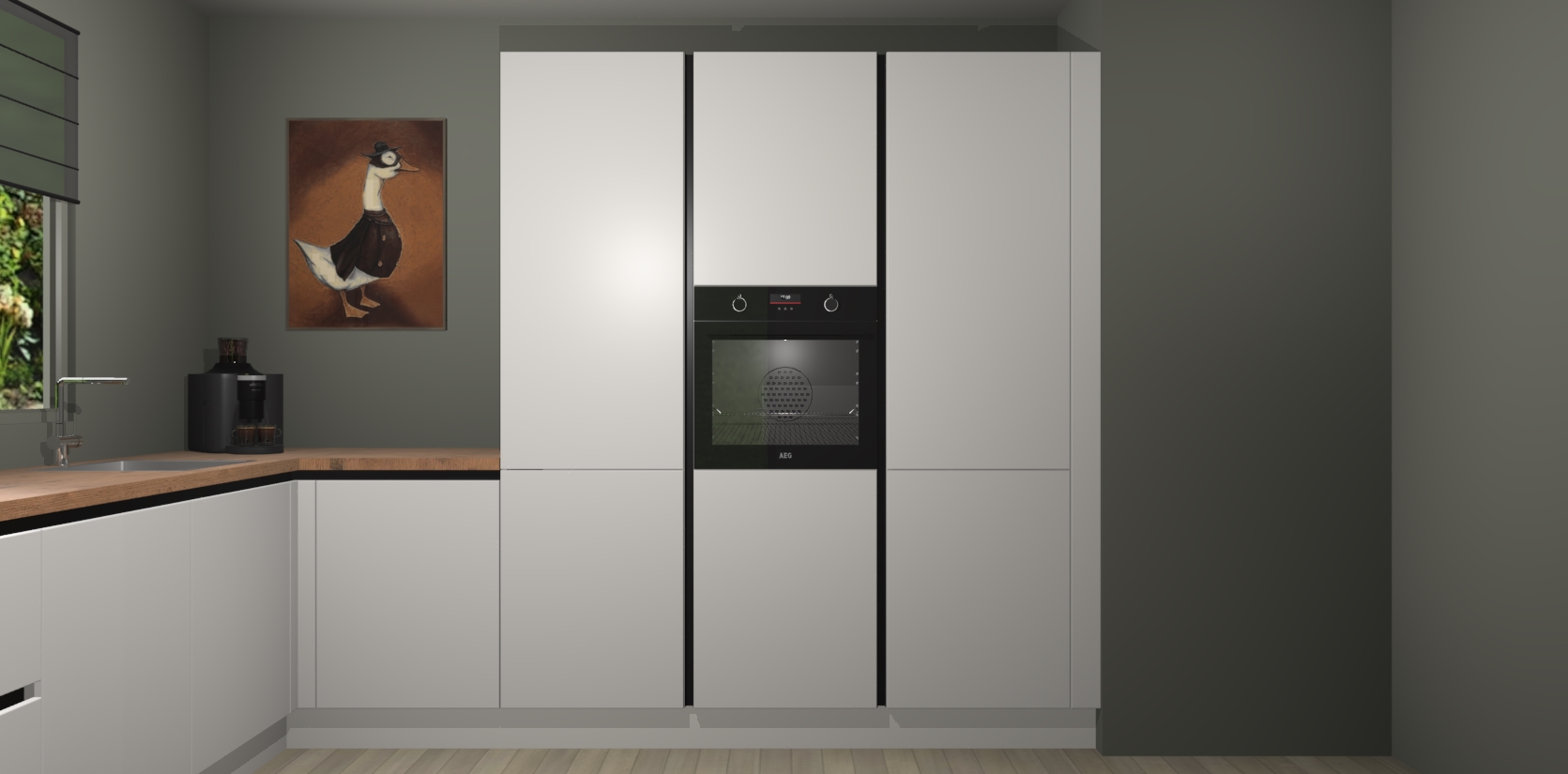 Welkom bij de Zijdegrijze greeploze keuken Laos. Deze prachtige keuken zal de komende jaren het middelpunt van de belangstelling in uw huis zijn. Uitgerust met vijf inbouwapparaten komt u nooit kookgereedschap tekort. Bovendien geeft de warme houtlook elke ruimte een uitnodigende en tijdloze uitstraling.