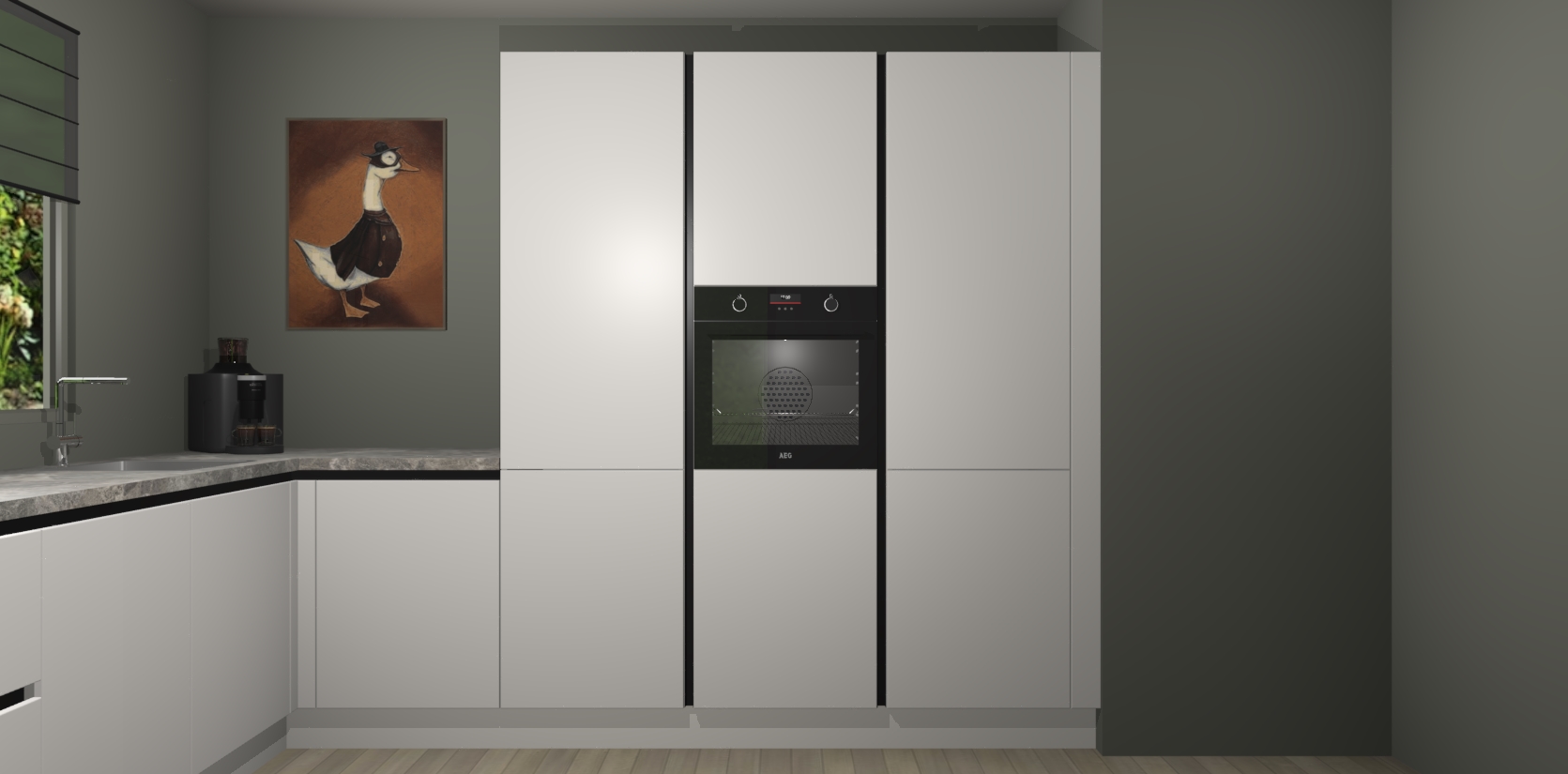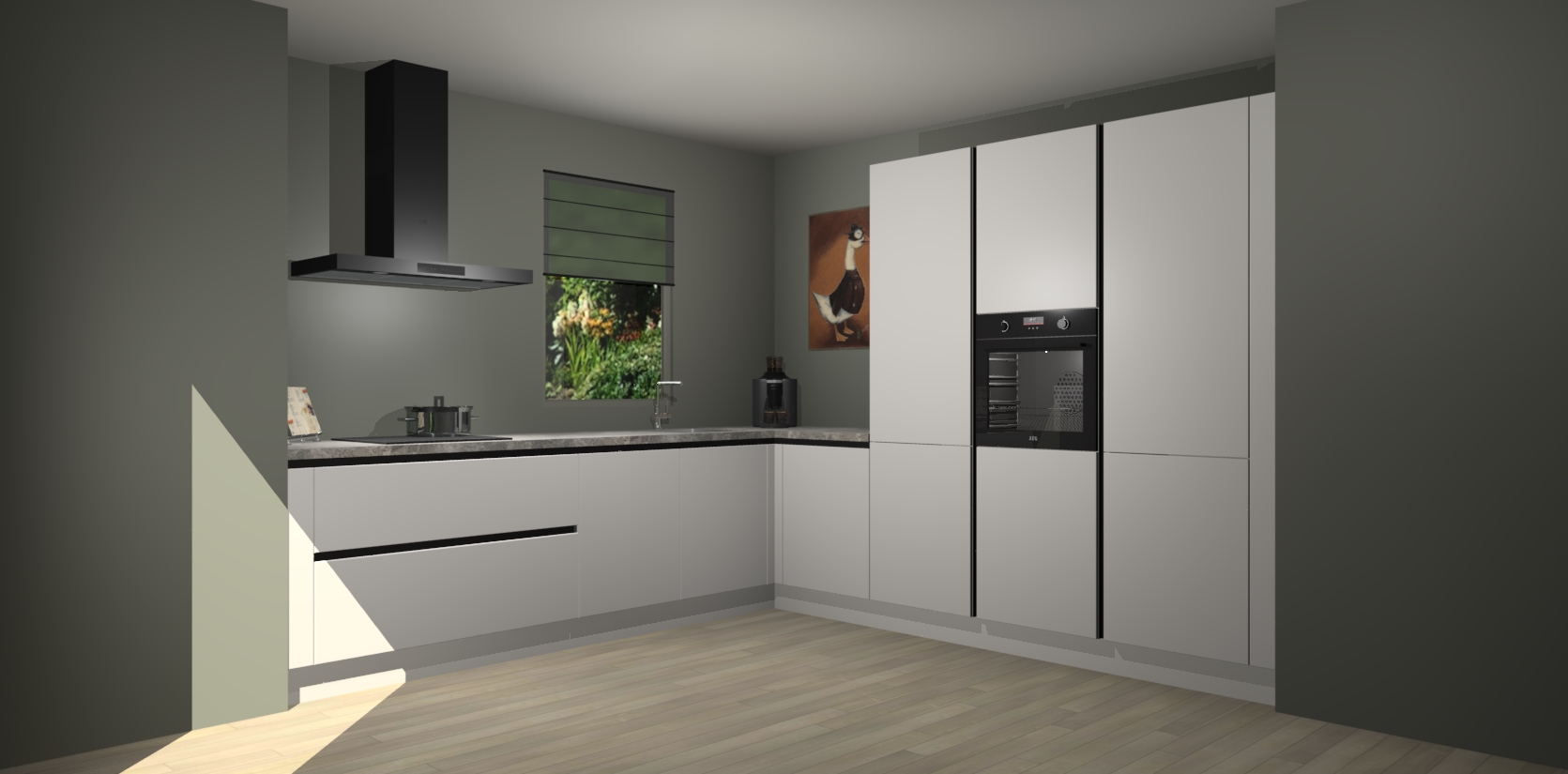 Welkom bij de Zijdegrijze greeploze keuken Laos. Deze prachtige keuken zal de komende jaren het middelpunt van de belangstelling in uw huis zijn. Uitgerust met vijf inbouwapparaten komt u nooit kookgereedschap tekort. Bovendien geeft de warme houtlook elke ruimte een uitnodigende en tijdloze uitstraling.