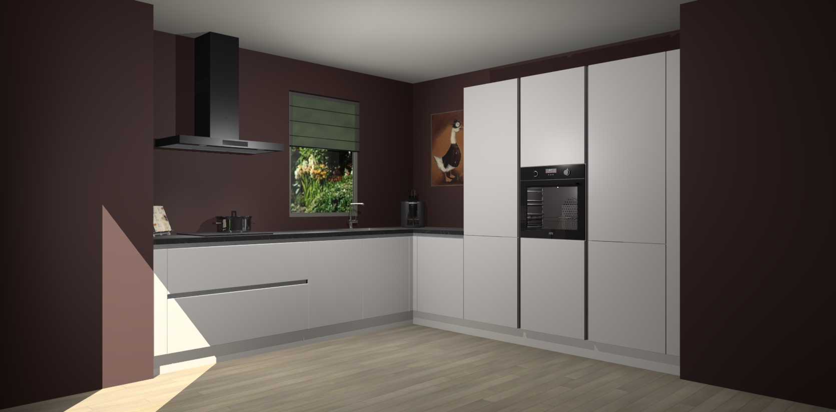 Welkom bij de Zijdegrijze greeploze keuken Laos. Deze prachtige keuken zal de komende jaren het middelpunt van de belangstelling in uw huis zijn. Uitgerust met vijf inbouwapparaten komt u nooit kookgereedschap tekort. Bovendien geeft de warme houtlook elke ruimte een uitnodigende en tijdloze uitstraling.