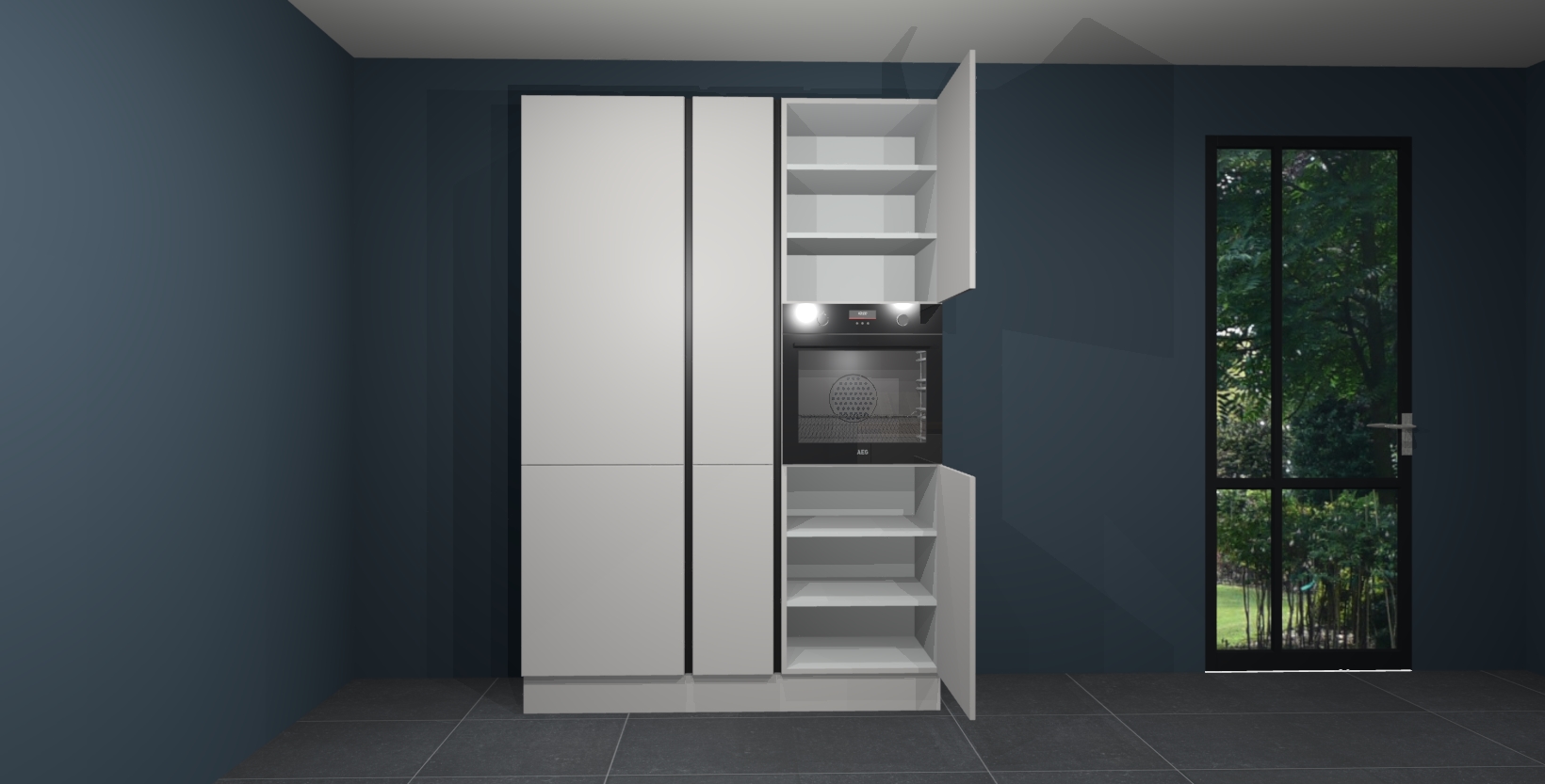 Met een modern, tijdloos design en ruime opslagruimte, zult u zich in no-time thuis voelen in uw nieuwe keuken. Uw leven wordt eenvoudiger met de soft-close deuren die voor het ultieme stille comfort zorgen - geen geluid dat u stoort terwijl u kookt. Ook is de keuken voorzien van 5 ingebouwde apparaten: een oven, inductie kookplaat, afzuigkap, vaatwasser en koelkast. Deze kunnen gemakkelijk na bestelling worden bijgewerkt naar AEG - waardoor uw luxe ervaring compleet is.