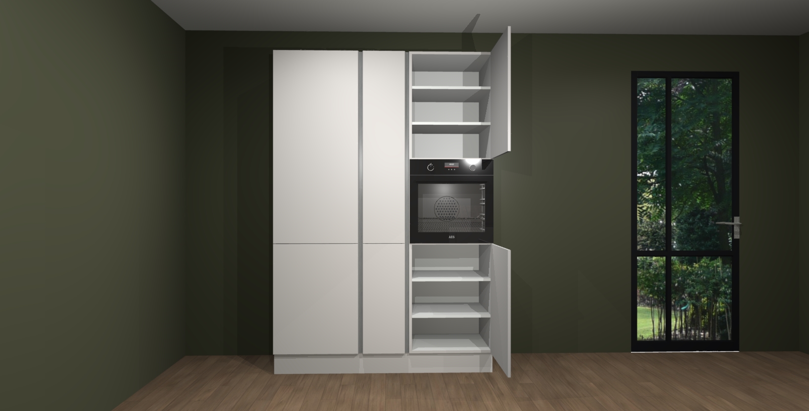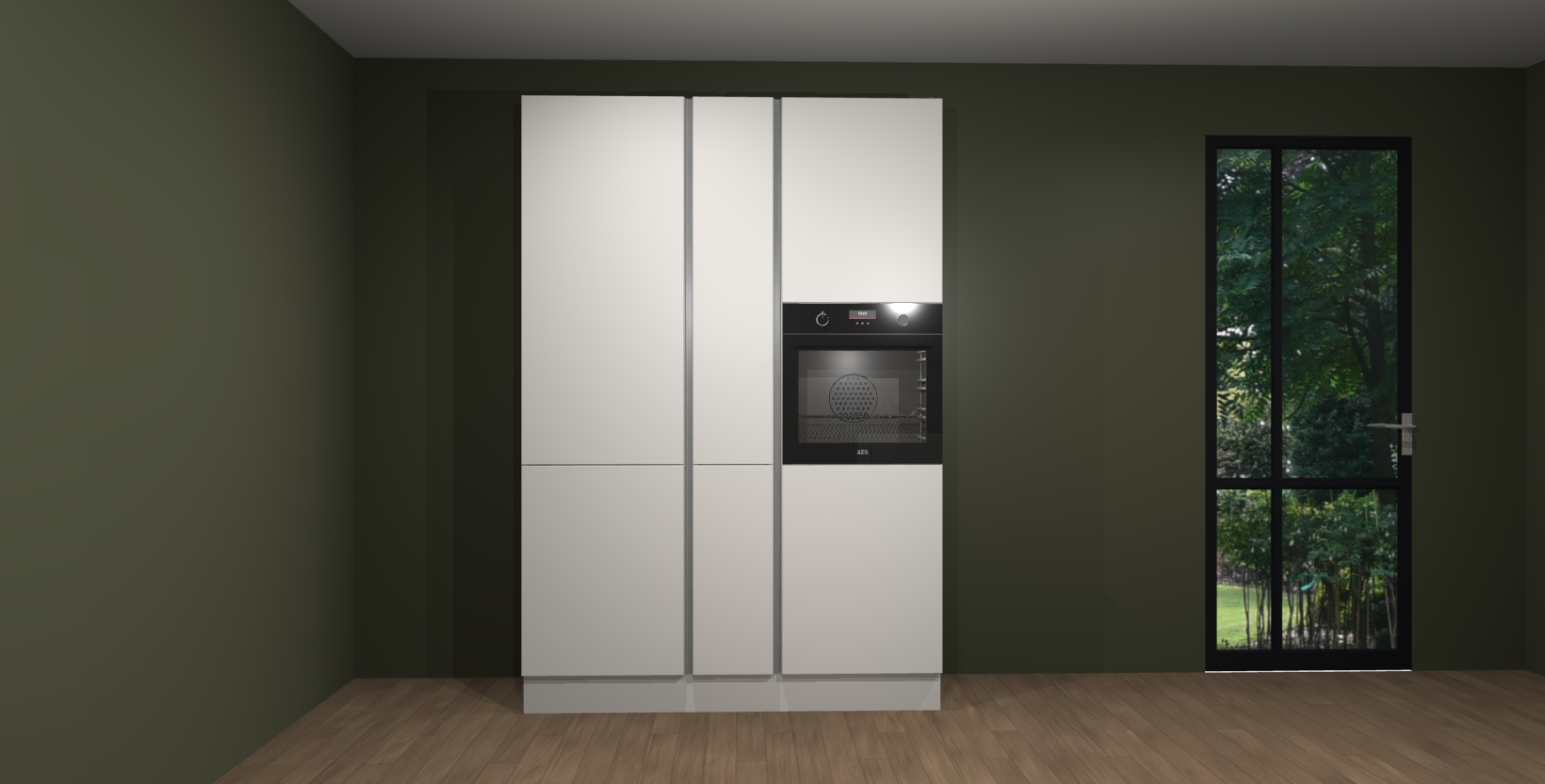 Met een modern, tijdloos design en ruime opslagruimte, zult u zich in no-time thuis voelen in uw nieuwe keuken. Uw leven wordt eenvoudiger met de soft-close deuren die voor het ultieme stille comfort zorgen - geen geluid dat u stoort terwijl u kookt. Ook is de keuken voorzien van 5 ingebouwde apparaten: een oven, inductie kookplaat, afzuigkap, vaatwasser en koelkast. Deze kunnen gemakkelijk na bestelling worden bijgewerkt naar AEG - waardoor uw luxe ervaring compleet is.