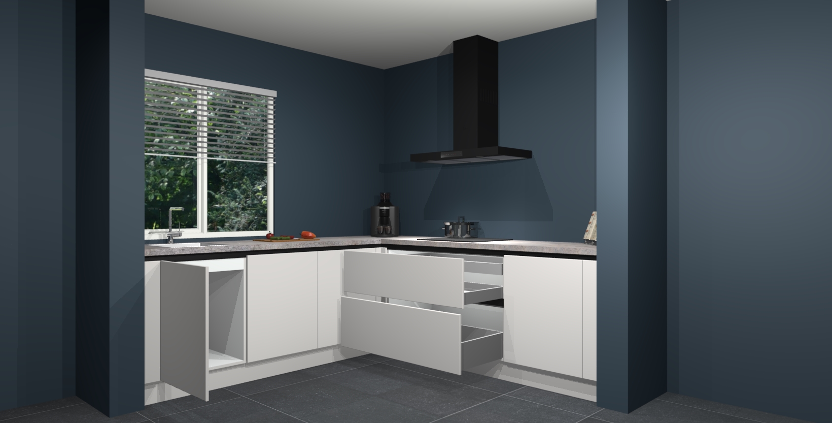 Hoekonderkast met le-mans systeem