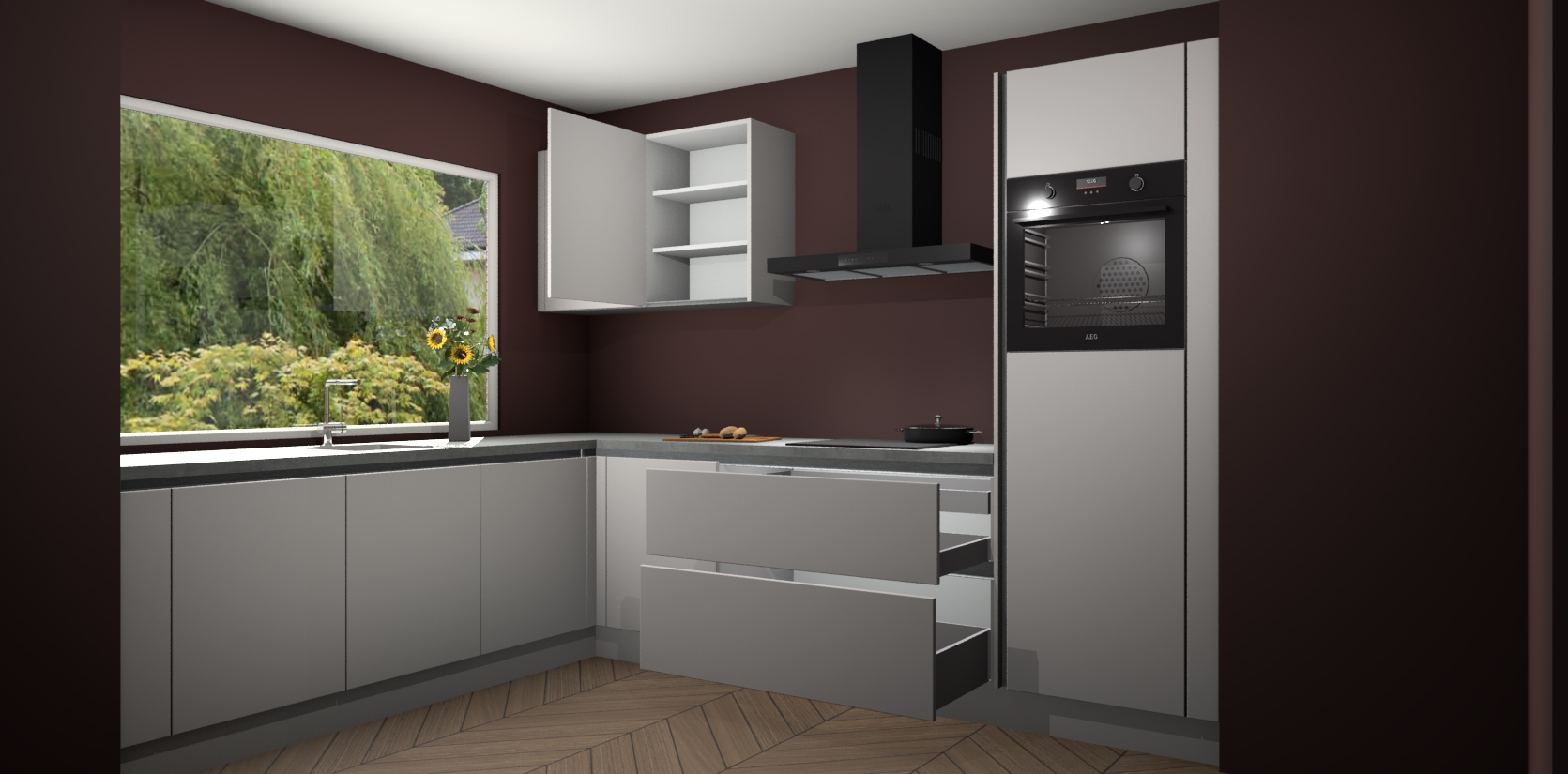 Bent u op zoek naar een onberispelijk keukenontwerp dat Duitse precisie en uitmuntende architectuur ademt? Zoek niet verder - de zijdegrijze greeploze keuken Limonos biedt de perfecte moderne mix van stijl en functionaliteit.