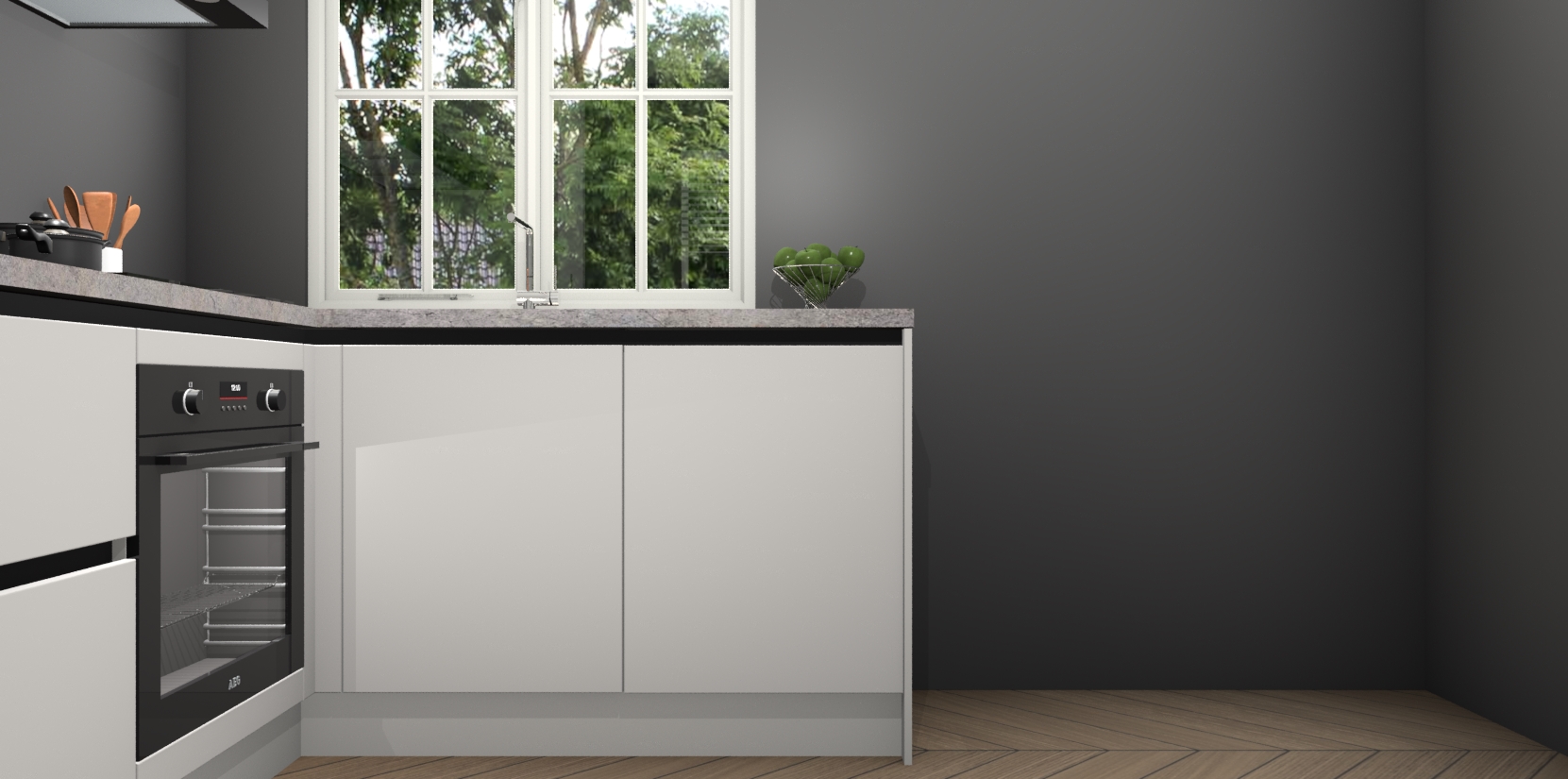 De Zijdegrijze greeploze keuken Linz is de perfecte keuze voor uw nieuwe moderne en tijdloze keuken. Ga voor moderne en tijdloze elegantie in uw keuken. De prachtige hoekkeuken biedt een verfrissende kijk op de manier waarop we ons vertrouwde keukenontwerp kunnen aanpassen in een nieuwe stijl. Één blik om alles te zien: zo mooi dat het bijna magisch lijkt.