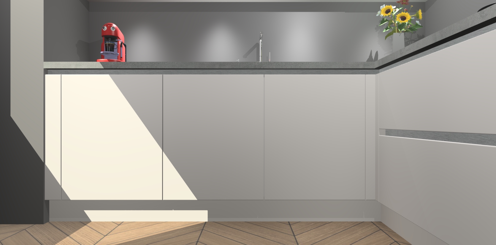 Inclusief plinten, stelpoten en werkblad