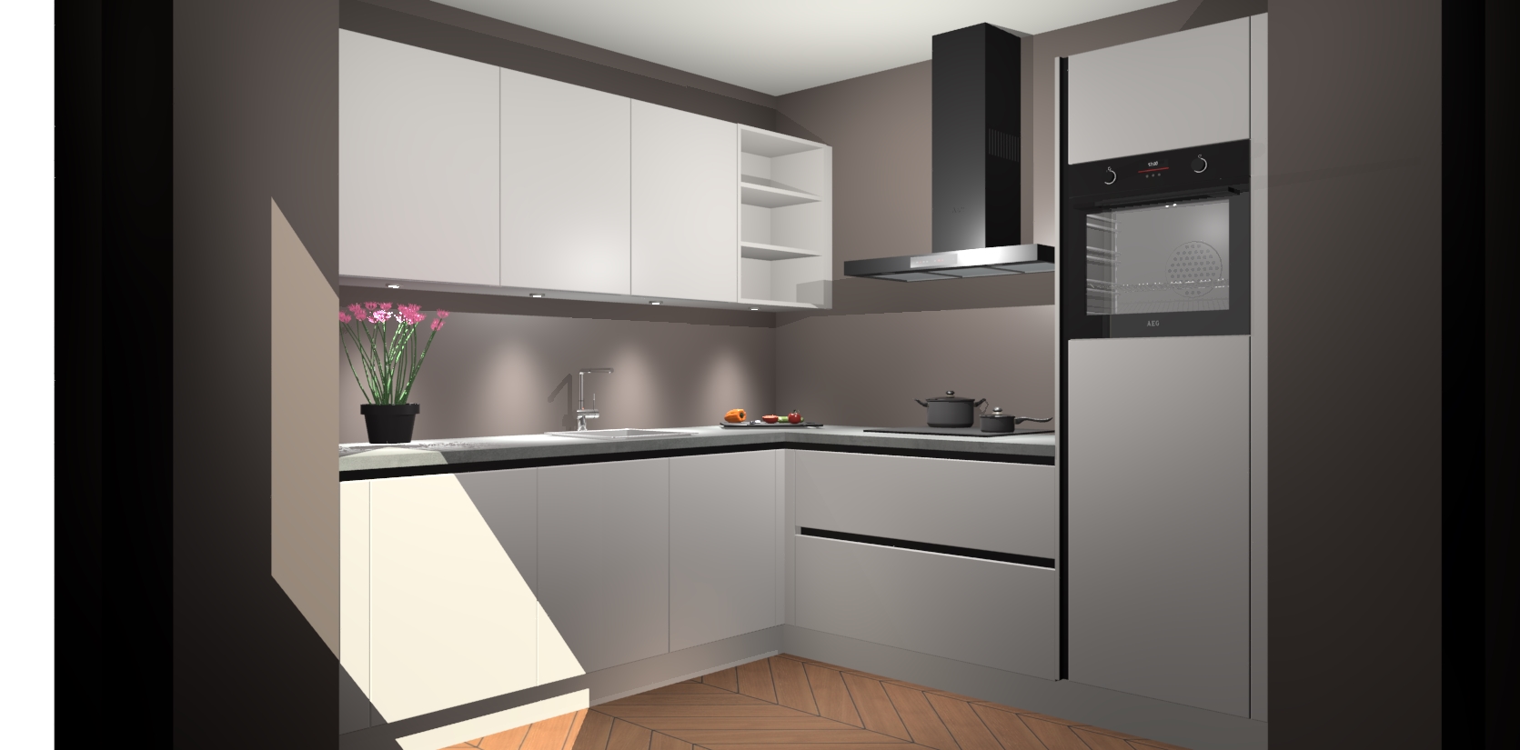 Met een modern, tijdloos design en ruime opslagruimte, zult u zich in no-time thuis voelen in uw nieuwe keuken. Uw leven wordt eenvoudiger met de soft-close deuren die voor het ultieme stille comfort zorgen - geen geluid dat u stoort terwijl u kookt. Ook is de keuken voorzien van 5 ingebouwde apparaten: een oven, inductie kookplaat, afzuigkap, vaatwasser en koelkast. Deze kunnen gemakkelijk na bestelling worden bijgewerkt naar AEG - waardoor uw luxe ervaring compleet is.