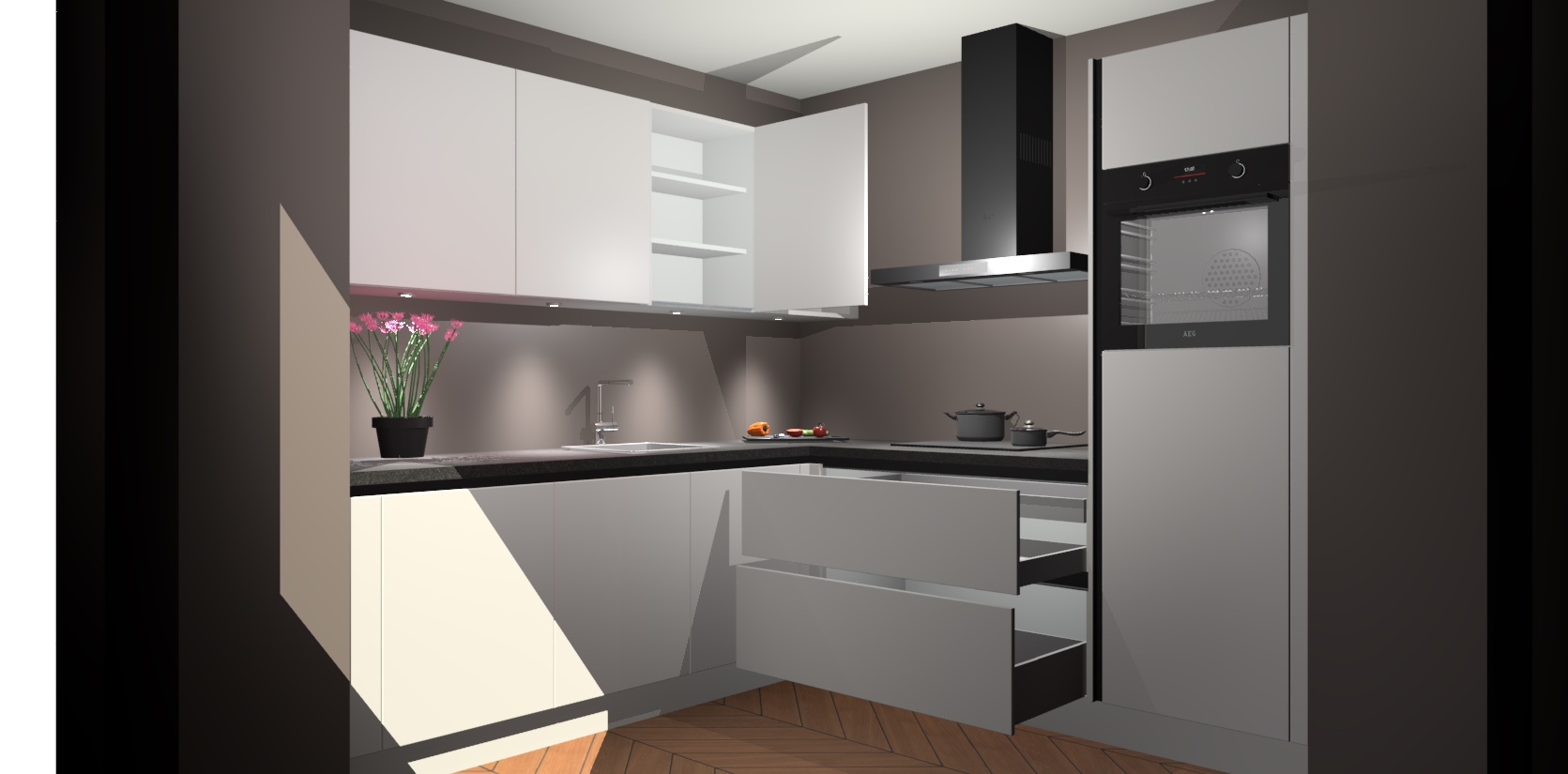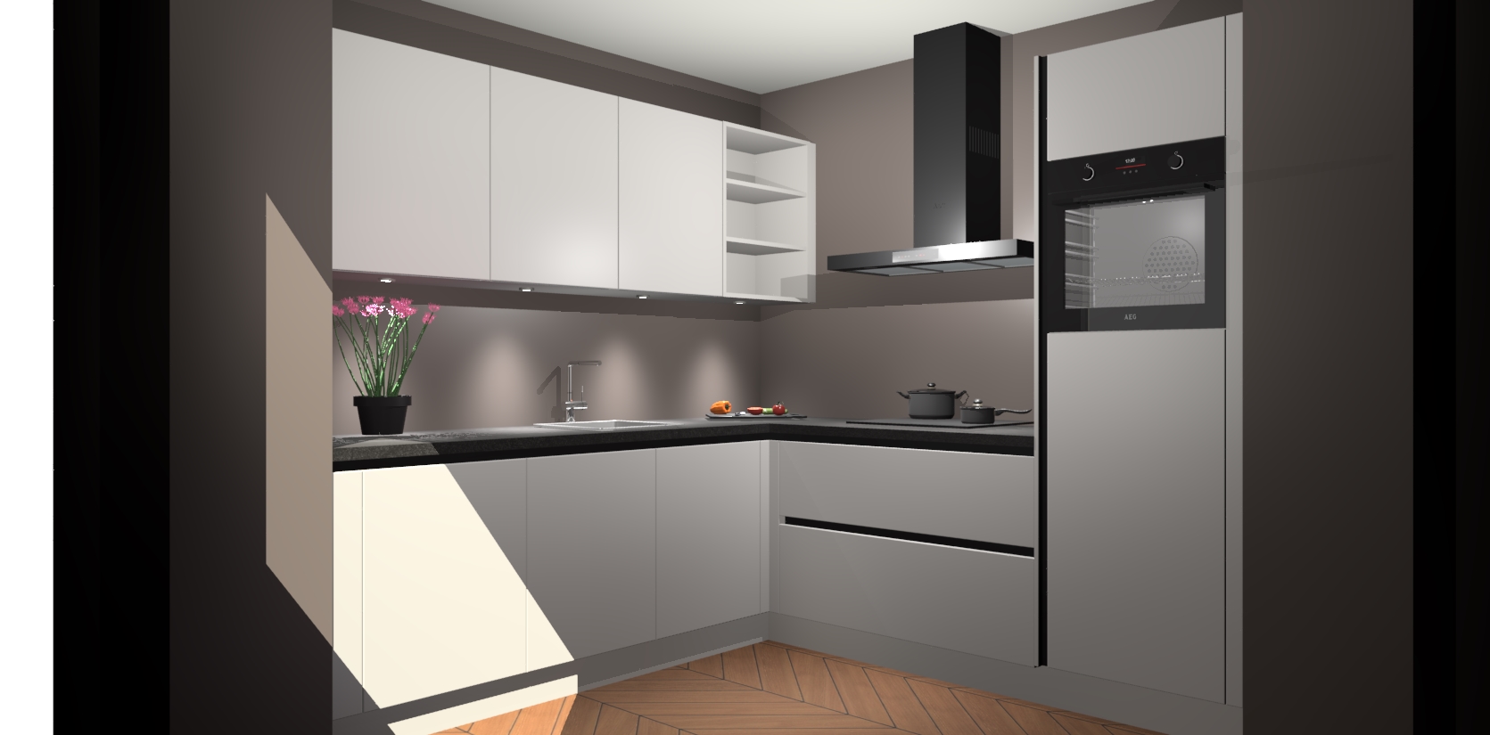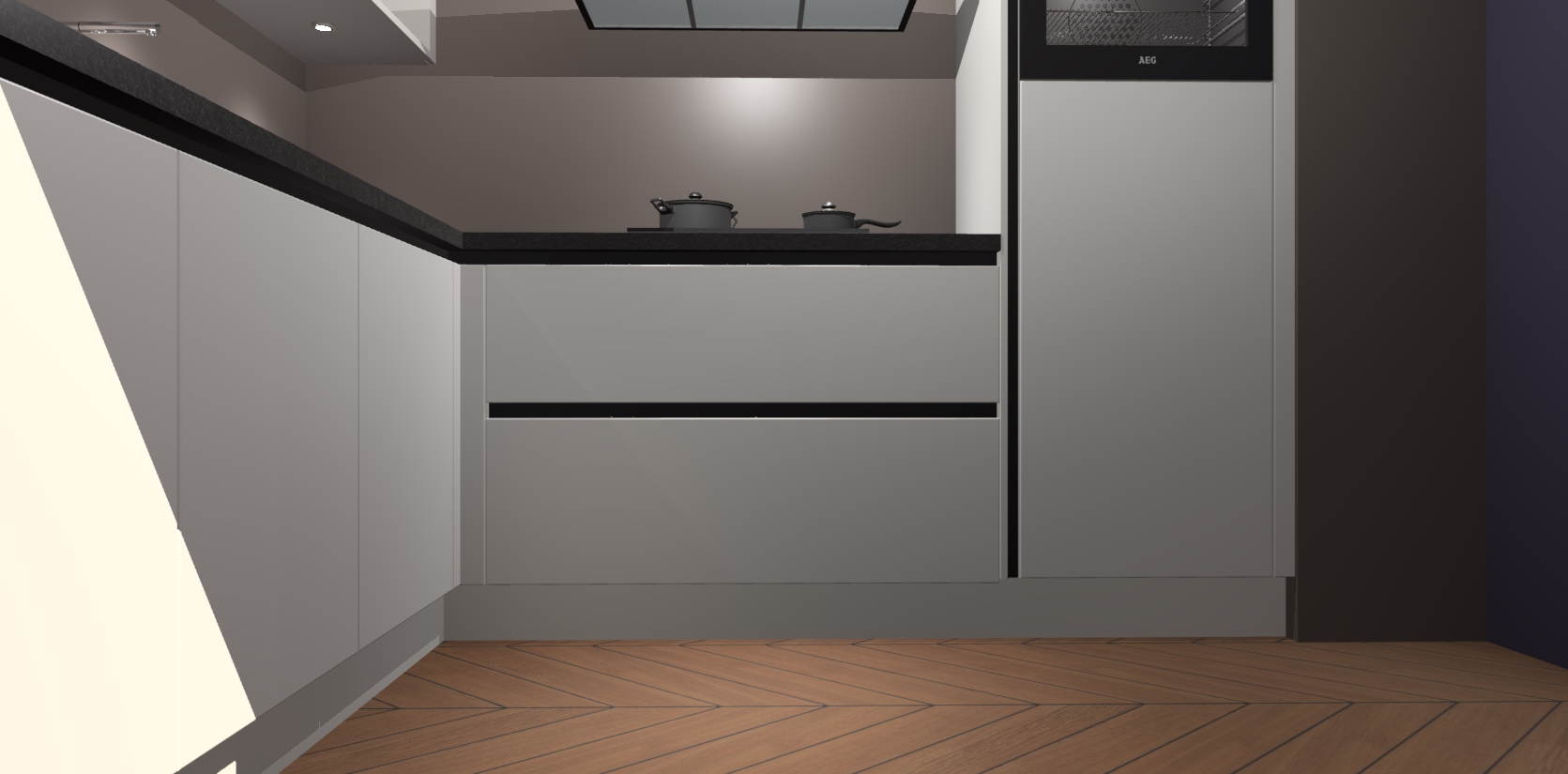 Met een modern, tijdloos design en ruime opslagruimte, zult u zich in no-time thuis voelen in uw nieuwe keuken. Uw leven wordt eenvoudiger met de soft-close deuren die voor het ultieme stille comfort zorgen - geen geluid dat u stoort terwijl u kookt. Ook is de keuken voorzien van 5 ingebouwde apparaten: een oven, inductie kookplaat, afzuigkap, vaatwasser en koelkast. Deze kunnen gemakkelijk na bestelling worden bijgewerkt naar AEG - waardoor uw luxe ervaring compleet is.