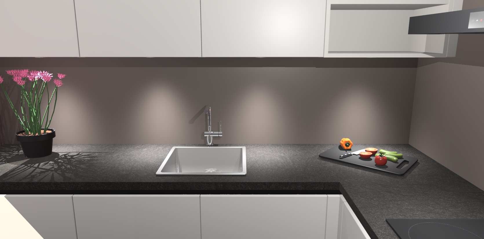 - De spoelbak is nog niet in gevreesd, dit dient tijdens het werk gedaan te worden