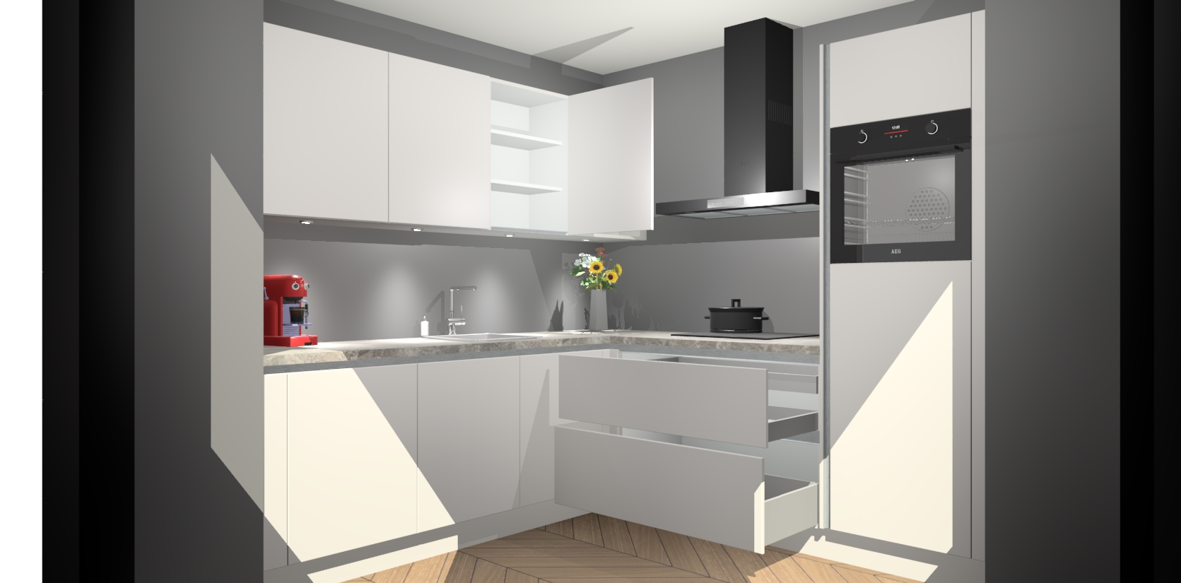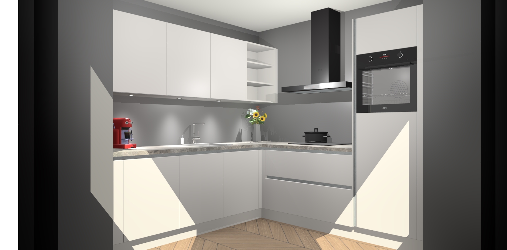 Met een modern, tijdloos design en ruime opslagruimte, zult u zich in no-time thuis voelen in uw nieuwe keuken. Uw leven wordt eenvoudiger met de soft-close deuren die voor het ultieme stille comfort zorgen - geen geluid dat u stoort terwijl u kookt. Ook is de keuken voorzien van 5 ingebouwde apparaten: een oven, inductie kookplaat, afzuigkap, vaatwasser en koelkast. Deze kunnen gemakkelijk na bestelling worden bijgewerkt naar AEG - waardoor uw luxe ervaring compleet is.