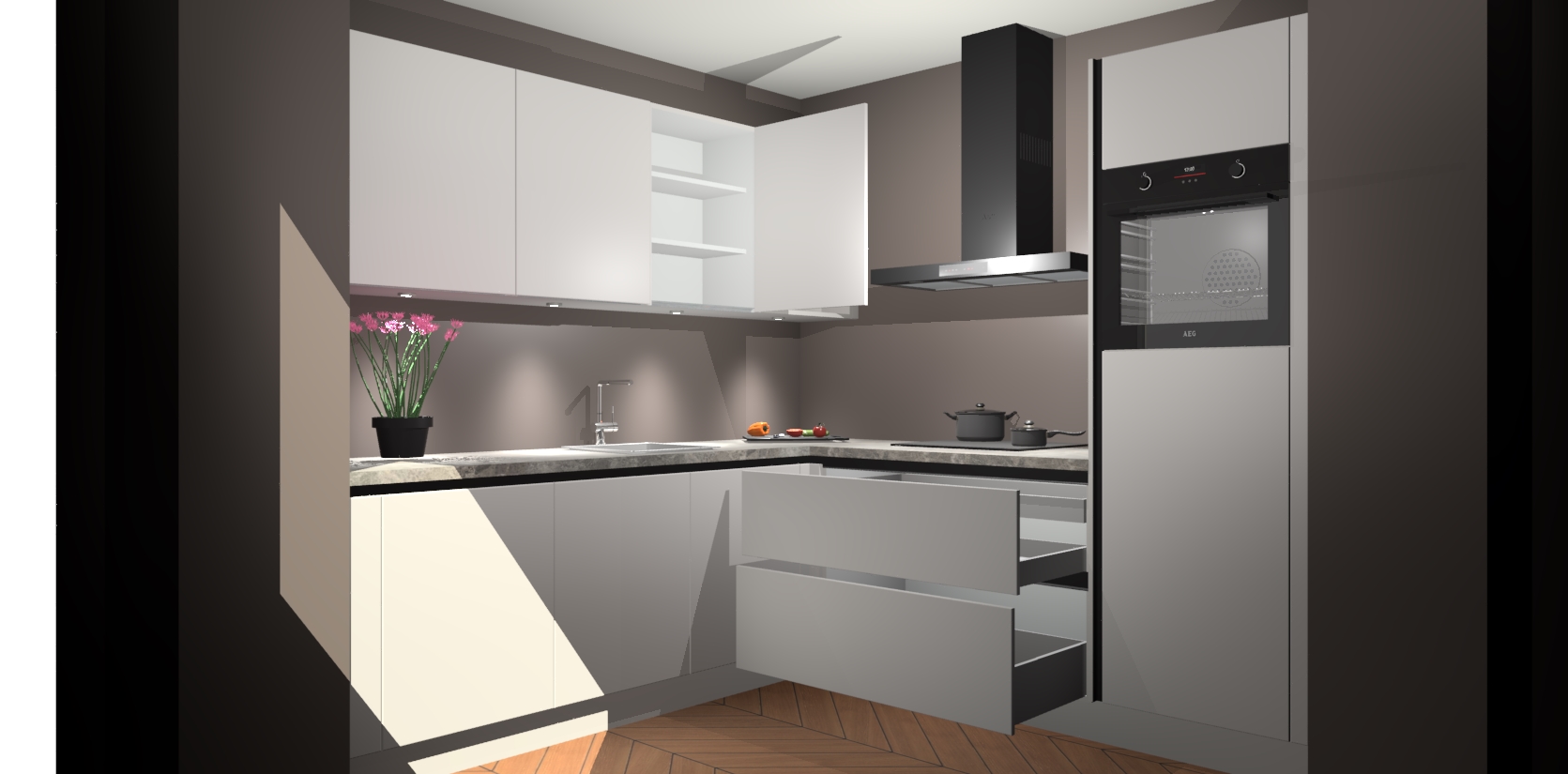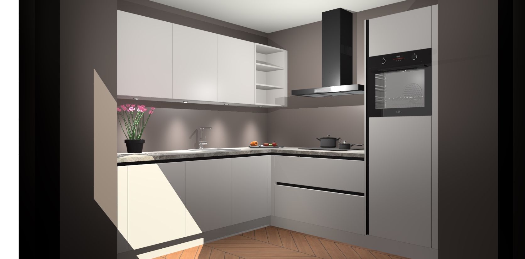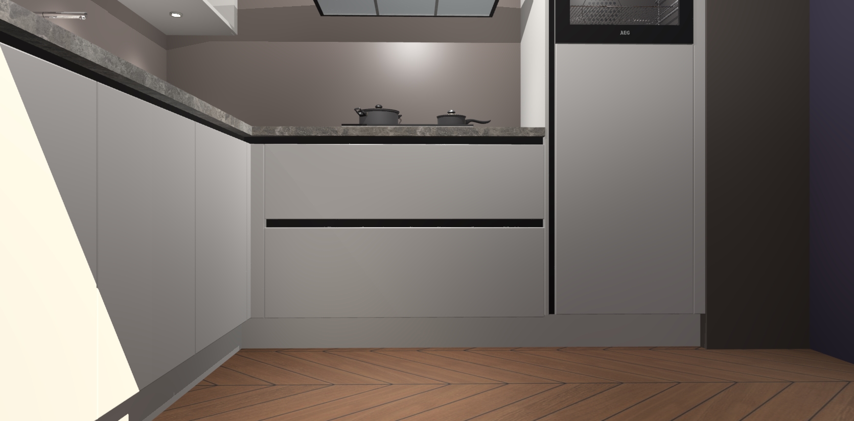 Met een modern, tijdloos design en ruime opslagruimte, zult u zich in no-time thuis voelen in uw nieuwe keuken. Uw leven wordt eenvoudiger met de soft-close deuren die voor het ultieme stille comfort zorgen - geen geluid dat u stoort terwijl u kookt. Ook is de keuken voorzien van 5 ingebouwde apparaten: een oven, inductie kookplaat, afzuigkap, vaatwasser en koelkast. Deze kunnen gemakkelijk na bestelling worden bijgewerkt naar AEG - waardoor uw luxe ervaring compleet is.