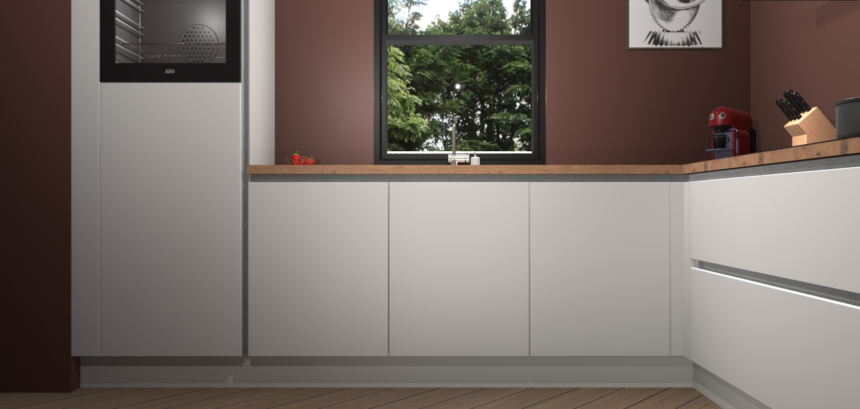 Welkom bij de zijdegrijze greeploze keuken Lublin. Deze prachtige keuken zal de komende jaren het middelpunt van de belangstelling in uw huis zijn. Uitgerust met vijf inbouwapparaten komt u nooit kookgereedschap tekort. Bovendien geeft de warme houtlook elke ruimte een uitnodigende en tijdloze uitstraling.