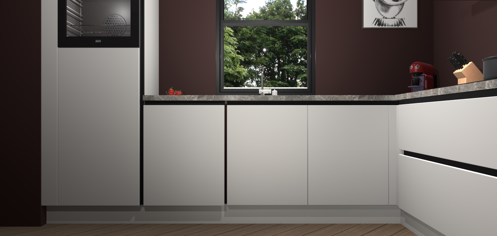 Welkom bij de zijdegrijze greeploze keuken Lublin. Deze prachtige keuken zal de komende jaren het middelpunt van de belangstelling in uw huis zijn. Uitgerust met vijf inbouwapparaten komt u nooit kookgereedschap tekort. Bovendien geeft de warme houtlook elke ruimte een uitnodigende en tijdloze uitstraling.