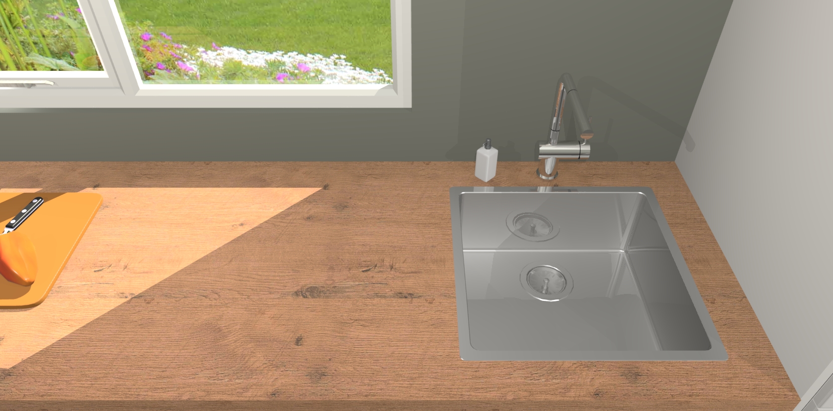 - De spoelbak is nog niet in gevreesd. Dit dient tijdens het werk gedaan te worden