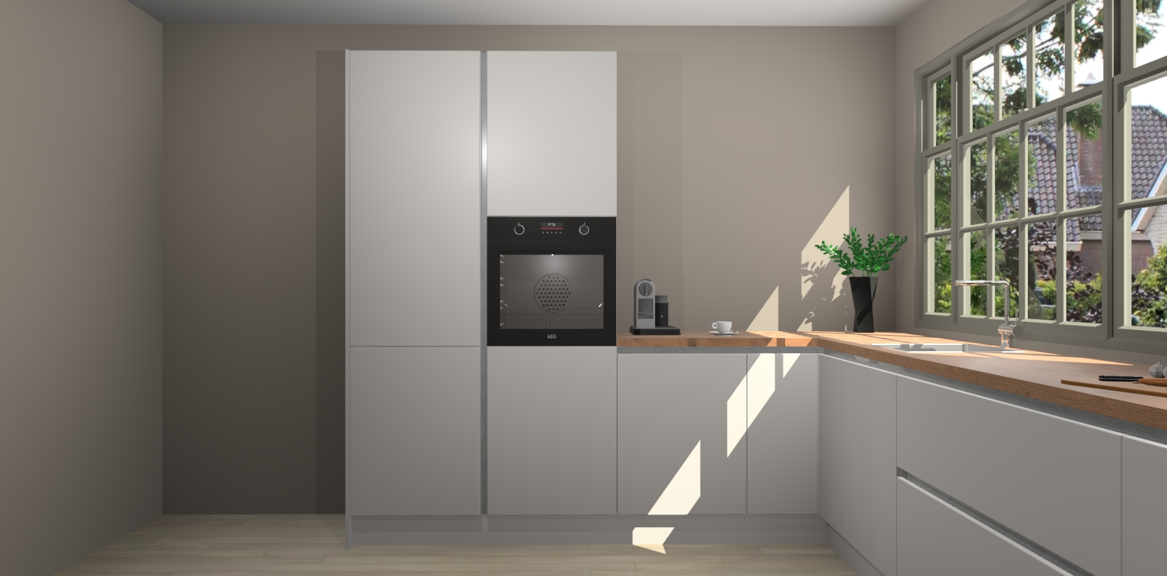 Kom dichtbij de perfecte keuken van uw dromen met de Zijdegrijze greeploze keuken Malaga. Met een prachtige houtlook en eigentijds ontwerp, straalt deze keuken warmte en sfeer uit. Of u nu liefhebber bent van traditionele of moderne stijlen, er is genoeg ruimte om aan al uw behoeften te voldoen.