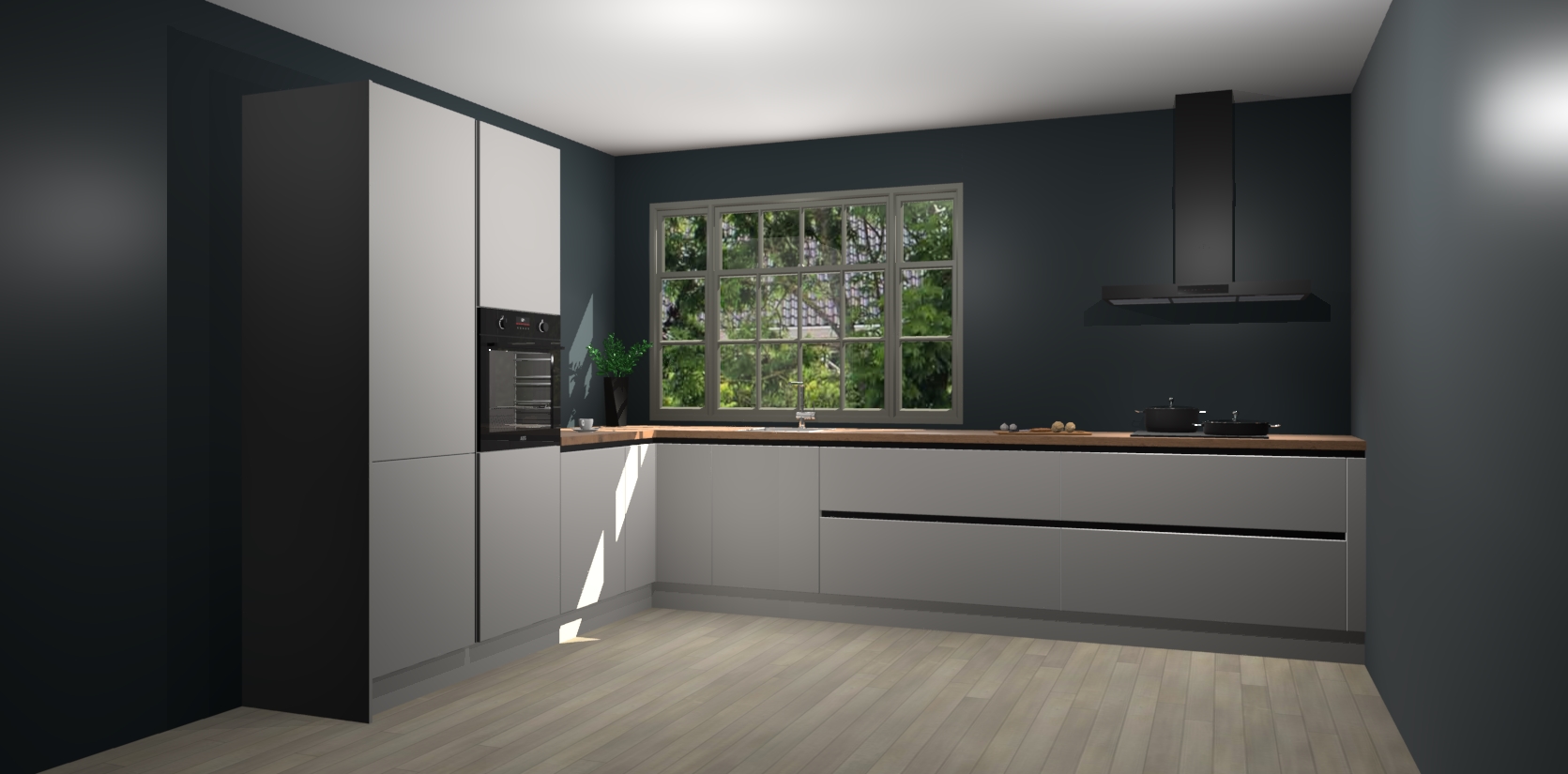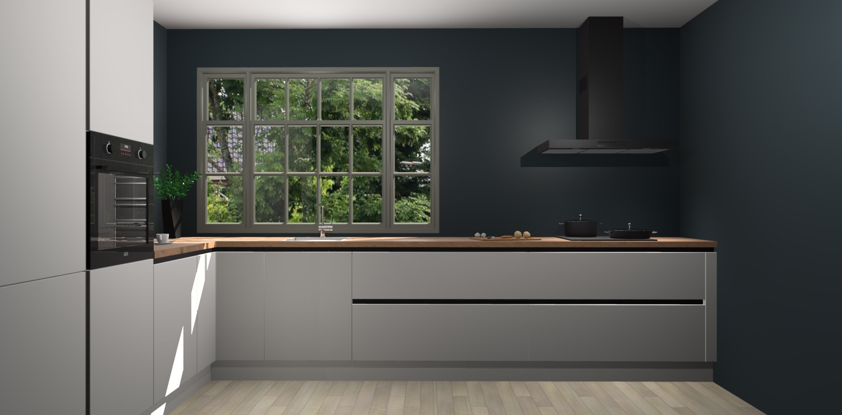 Kom dichtbij de perfecte keuken van uw dromen met de Zijdegrijze greeploze keuken Malaga. Met een prachtige houtlook en eigentijds ontwerp, straalt deze keuken warmte en sfeer uit. Of u nu liefhebber bent van traditionele of moderne stijlen, er is genoeg ruimte om aan al uw behoeften te voldoen.