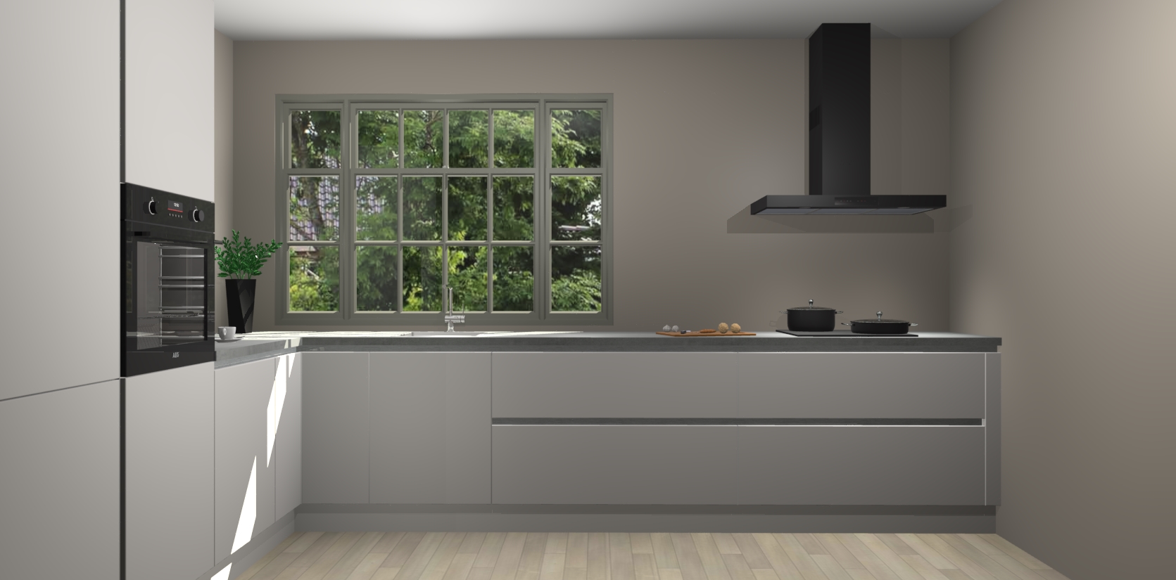 Kom dichtbij de perfecte keuken van uw dromen met de Zijdegrijze greeploze keuken Malaga. Met een prachtige houtlook en eigentijds ontwerp, straalt deze keuken warmte en sfeer uit. Of u nu liefhebber bent van traditionele of moderne stijlen, er is genoeg ruimte om aan al uw behoeften te voldoen.