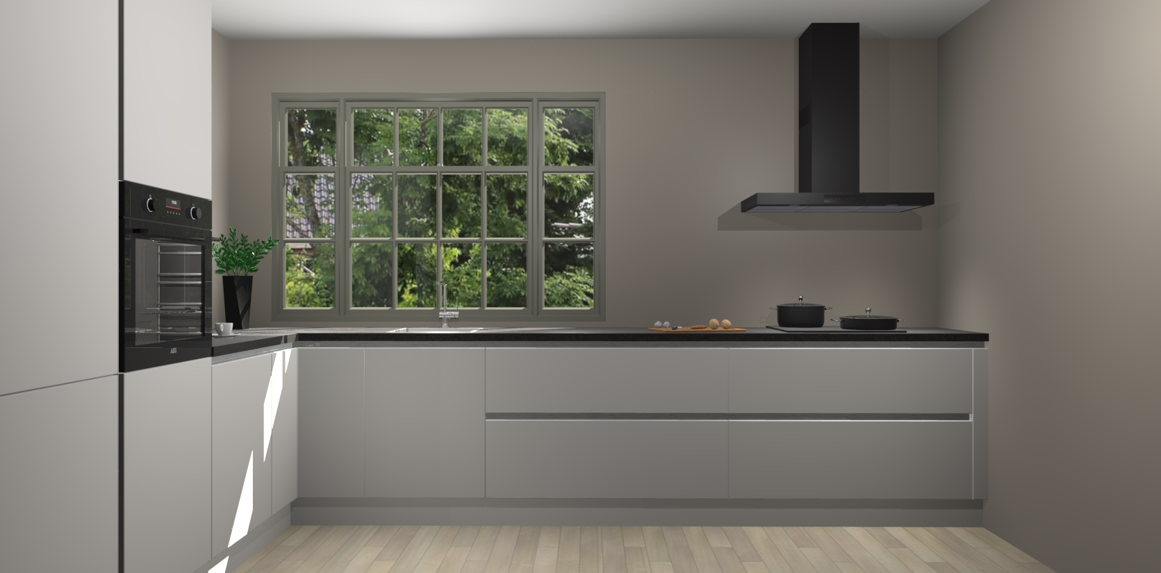 Heeft u nog apparatuur nodig? Geen probleem: de Zijdegrijze greeploze keuken Malaga bevat vijf ingebouwde apparaten - een oven, inductiekookplaat, afzuigkap, vaatwasser en koelkast - die gemakkelijk kunnen worden bijgewerkt naar AEG na bestelling. En als dat nog niet genoeg is; onze kasten worden pre-geassembleerd geleverd en zijn verkrijgbaar tegen een vastgeroeste lage prijs! U hoeft nooit meer te zoeken naar goede kwaliteit en service want onze producten hebben echt Duitse kwaliteit.