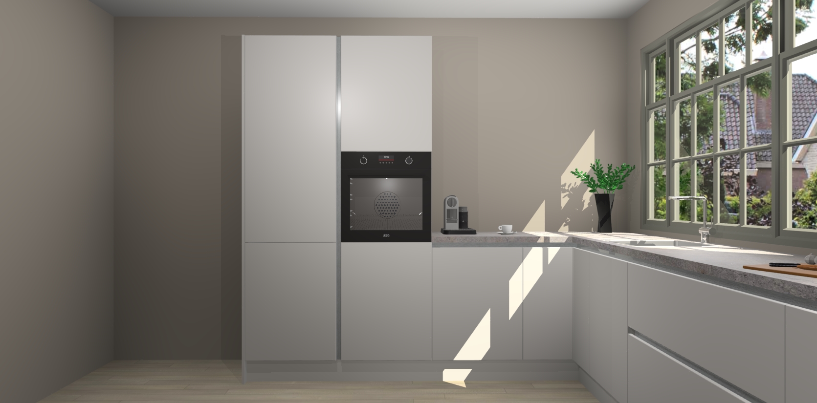 Heeft u nog apparatuur nodig? Geen probleem: de Zijdegrijze greeploze keuken Malaga bevat vijf ingebouwde apparaten - een oven, inductiekookplaat, afzuigkap, vaatwasser en koelkast - die gemakkelijk kunnen worden bijgewerkt naar AEG na bestelling. En als dat nog niet genoeg is; onze kasten worden pre-geassembleerd geleverd en zijn verkrijgbaar tegen een vastgeroeste lage prijs! U hoeft nooit meer te zoeken naar goede kwaliteit en service want onze producten hebben echt Duitse kwaliteit.