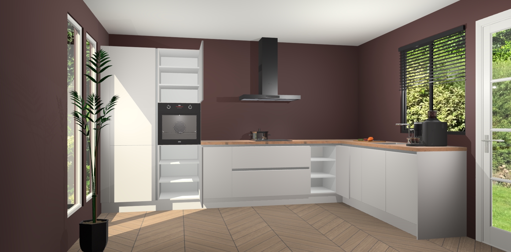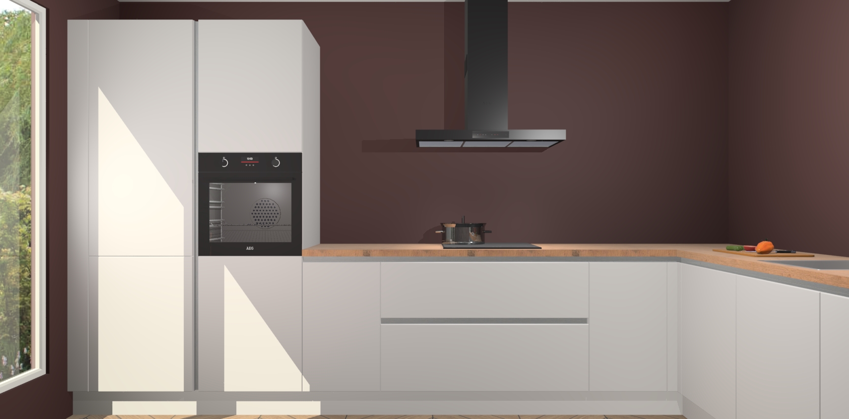 Met een modern, tijdloos design en ruime opslagruimte, zult u zich in no-time thuis voelen in uw nieuwe keuken. Uw leven wordt eenvoudiger met de soft-close deuren die voor het ultieme stille comfort zorgen - geen geluid dat u stoort terwijl u kookt. Ook is de keuken voorzien van 5 ingebouwde apparaten: een oven, inductie kookplaat, afzuigkap, vaatwasser en koelkast. Deze kunnen gemakkelijk na bestelling worden bijgewerkt naar AEG - waardoor uw luxe ervaring compleet is.