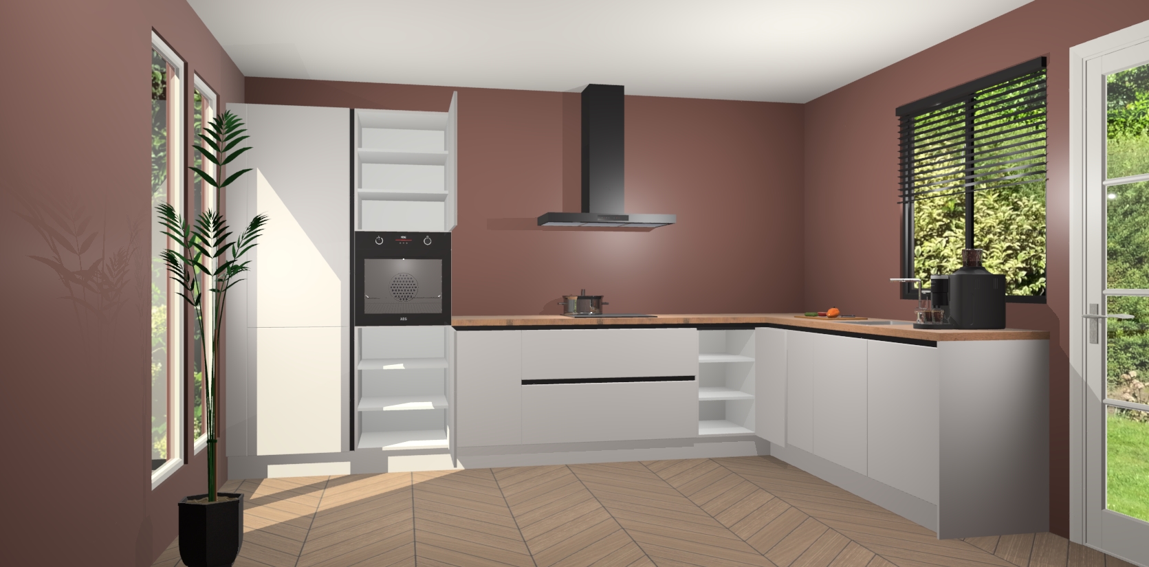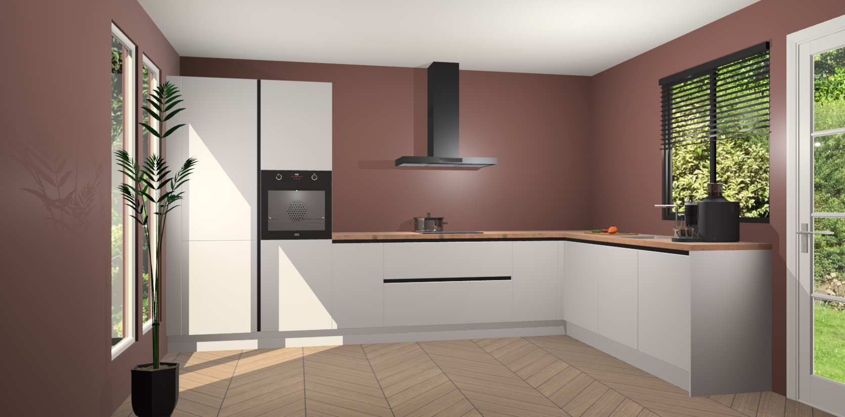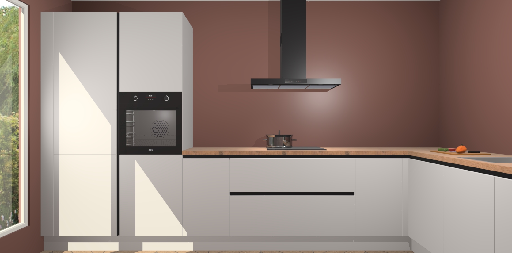 Met een modern, tijdloos design en ruime opslagruimte, zult u zich in no-time thuis voelen in uw nieuwe keuken. Uw leven wordt eenvoudiger met de soft-close deuren die voor het ultieme stille comfort zorgen - geen geluid dat u stoort terwijl u kookt. Ook is de keuken voorzien van 5 ingebouwde apparaten: een oven, inductie kookplaat, afzuigkap, vaatwasser en koelkast. Deze kunnen gemakkelijk na bestelling worden bijgewerkt naar AEG - waardoor uw luxe ervaring compleet is.