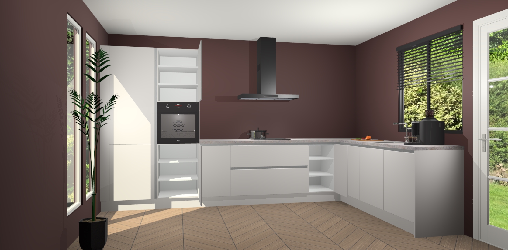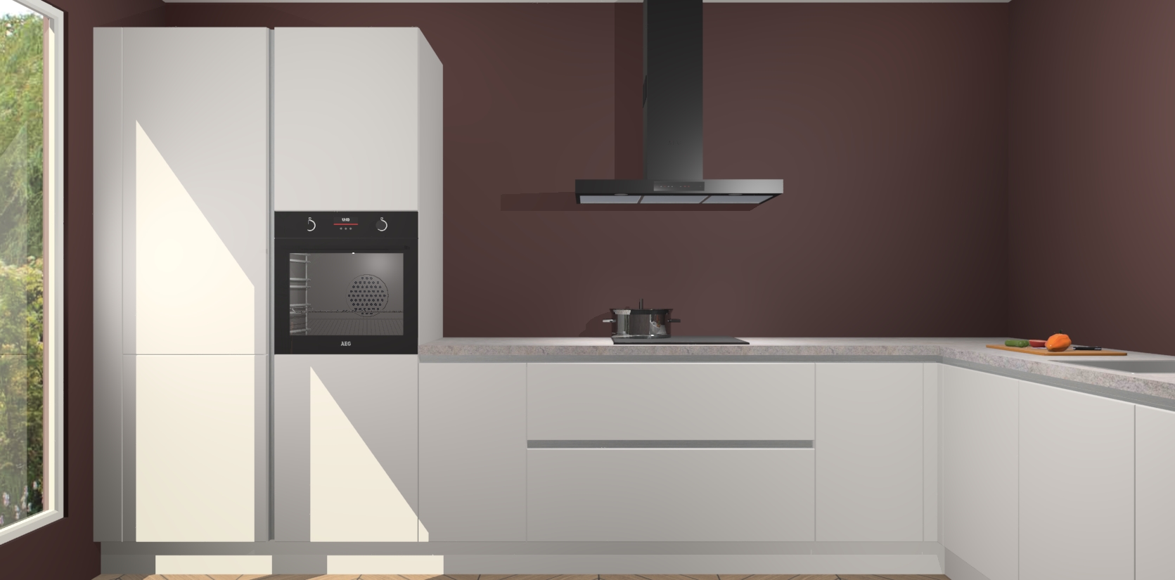Met een modern, tijdloos design en ruime opslagruimte, zult u zich in no-time thuis voelen in uw nieuwe keuken. Uw leven wordt eenvoudiger met de soft-close deuren die voor het ultieme stille comfort zorgen - geen geluid dat u stoort terwijl u kookt. Ook is de keuken voorzien van 5 ingebouwde apparaten: een oven, inductie kookplaat, afzuigkap, vaatwasser en koelkast. Deze kunnen gemakkelijk na bestelling worden bijgewerkt naar AEG - waardoor uw luxe ervaring compleet is.